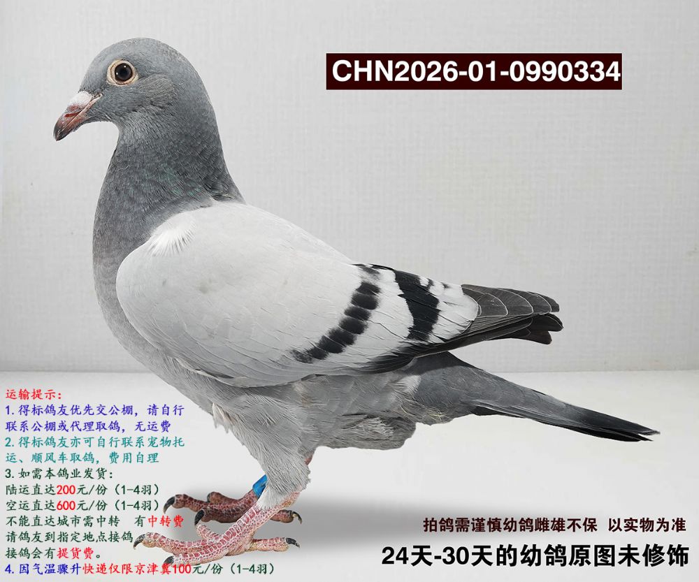 所有拍卖赛鸽均为幼鸽,如经过长途运输、变换鸽舍及周边环境;如出现健康问题:收到鸽子请录视频为证,收到鸽子3日内联系,逾期不做保证;成年后做育问题,我们不做保证。
