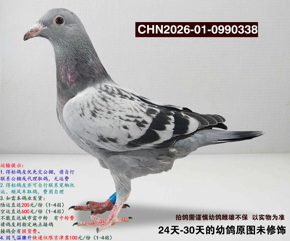 所有拍卖赛鸽均为幼鸽,如经过长途运输、变换鸽舍及周边环境;如出现健康问题:收到鸽子请录视频为证,收到鸽子3日内联系,逾期不做保证;成年后做育问题,我们不做保证。