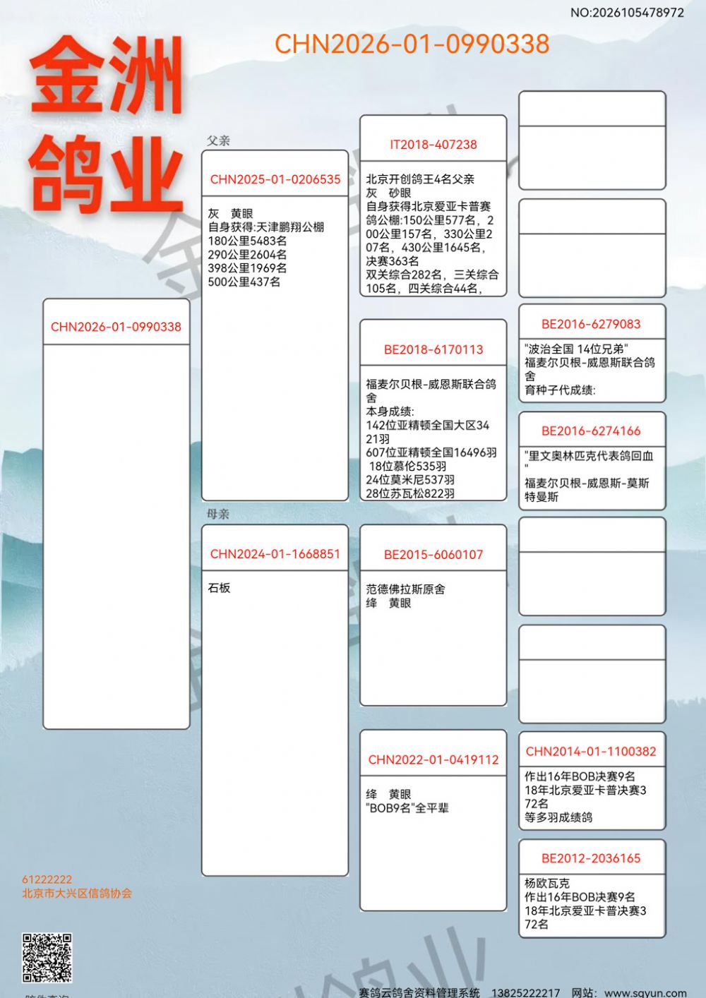 | 1659811 | 北京金洲鸽业幼鸽0990306 | ¥600元 | 0次 |