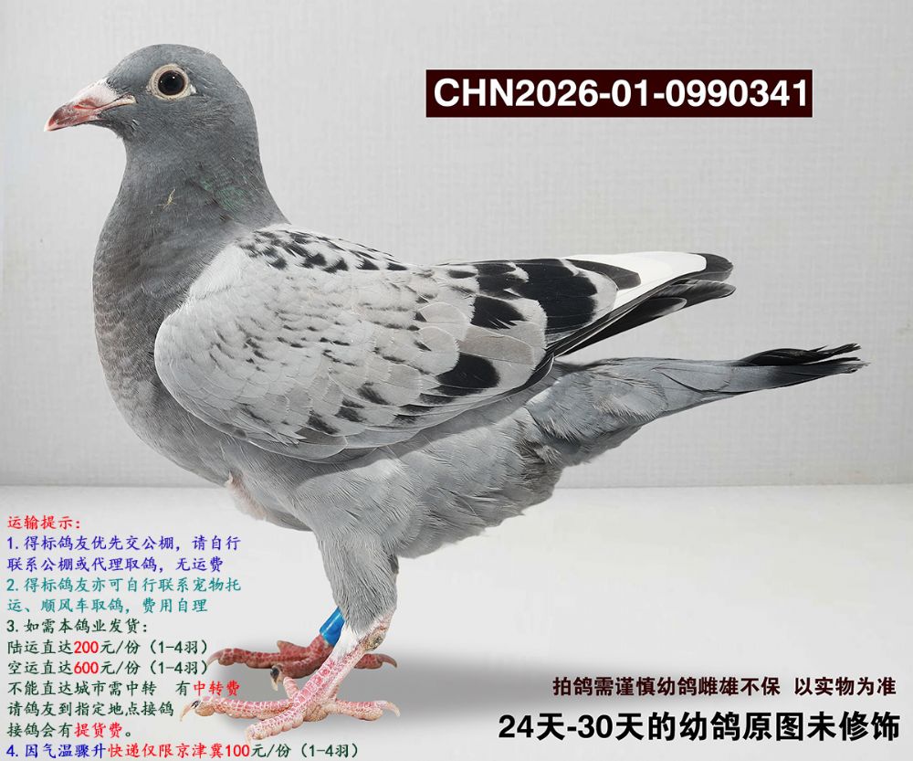 所有拍卖赛鸽均为幼鸽,如经过长途运输、变换鸽舍及周边环境;如出现健康问题:收到鸽子请录视频为证,收到鸽子3日内联系,逾期不做保证;成年后做育问题,我们不做保证。
