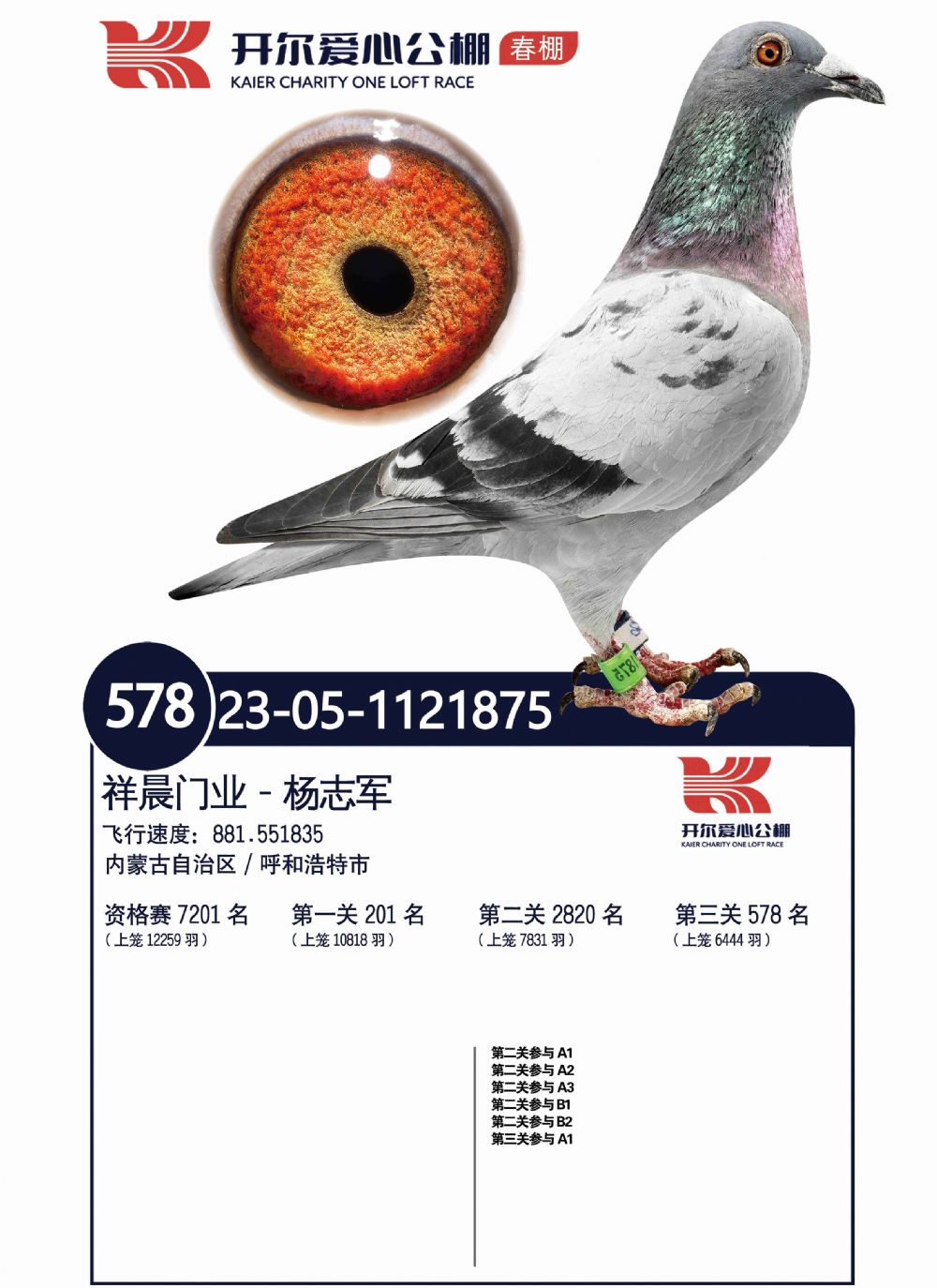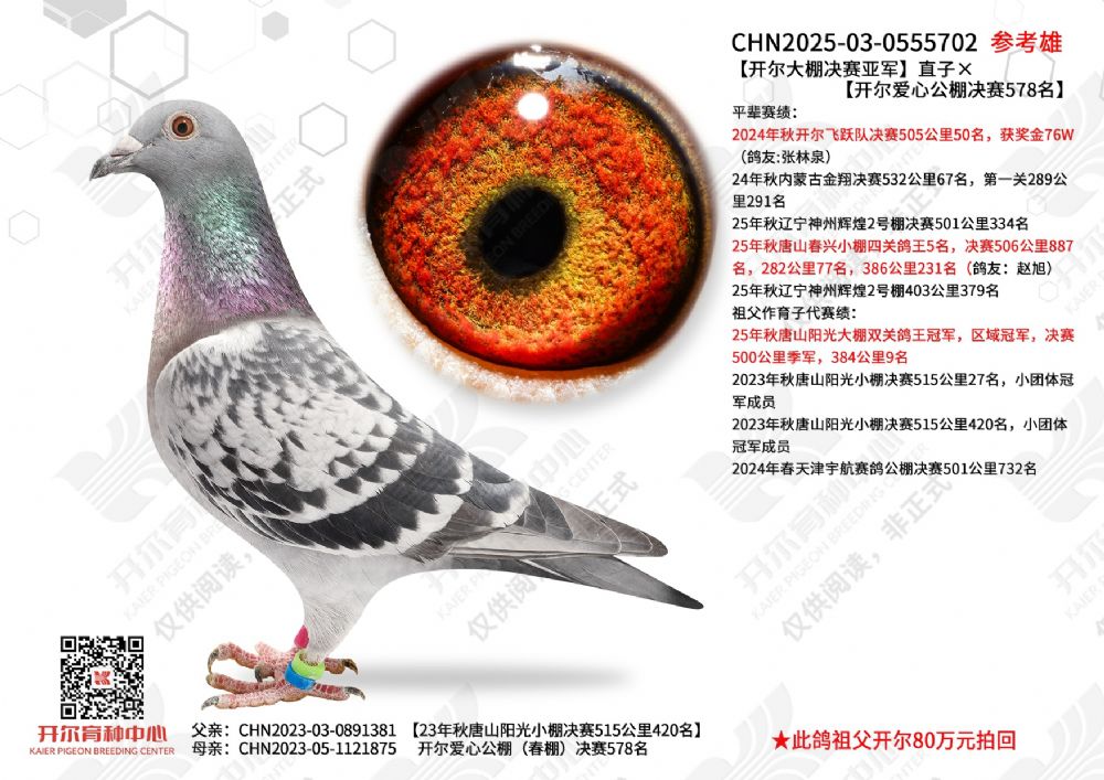 - 当前查看拍卖鸽:开尔大棚决赛亚军直子×开尔爱心公棚决赛5