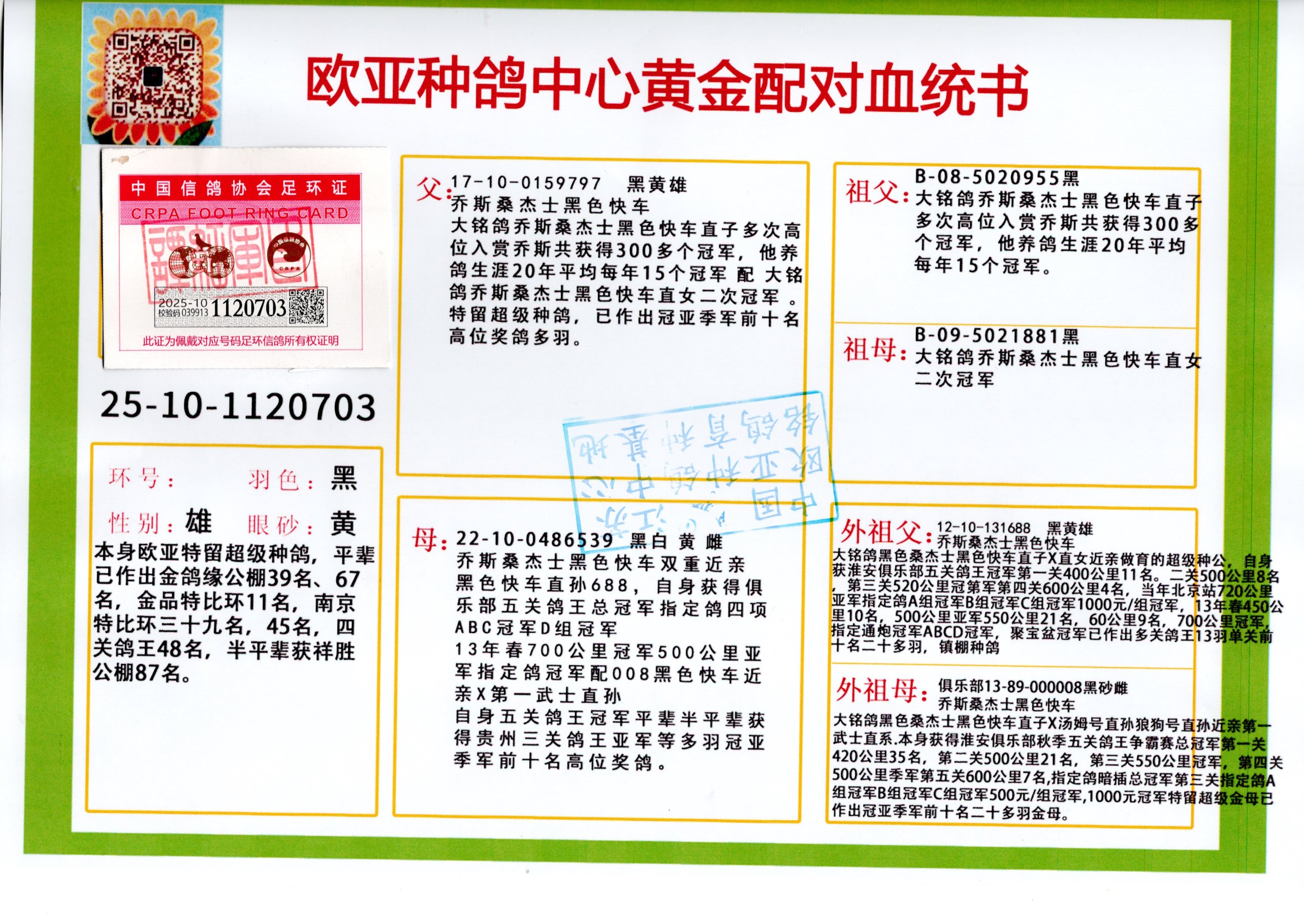 24年秋南京特比环欧亚荣获大团体冠军.小团体冠军551公里大特比13名.14名.16名.19名.20名.21名.24名.26名.27名.28名.42名.52名.54名.57名.65名.66名.68名.70名.71名.72名.74名.76名.80名.82名.83名.84名.85名.86名.90名.92名.110名.116名.121名.122名.128名.131名.158名.161名.164名.165名.166名.172名.174名.177名.182名.195名.196名.201名.205名.208名.210名.216名.253名.269名.275名.276名.294名.296名.299名,,24年秋云南天南铜都公棚决赛415名.天南铜都小棚决赛409名.云南玉活公棚决赛102名.490名.团体32名上笼二羽进二羽,天南铜都大棚506公里决赛445名。热烈祝贺河北省巨鹿县李兰生老师用欧亚泰山号血系连续十一年夺冠军,河北省国家赛冠军.全国季军等多次前十名高位,扬州王军王总用欧亚利奥24年春季获山东翔宇公棚决赛33名盖比53名。南京刘正龙刘总用欧亚盖比获得24年秋山东潍坊国际公棚决赛42名.精英赛30名.三关鸽王71名.决赛86名.加站赛16名.南京市特比环A组鸽王9名.B组鸽王5名.6名.C组鸽王5名.精英赛冠军4名.技能赛A组冠军4名.5名.秦淮区特比环荣获15名.46名.48名.87名。四川西昌徐亮徐总用欧亚利奥获得凉山州聚友决赛177名.第二关亚军双关鸽王19名.三关鸽王105名.云南豪庭公棚决赛603名。热烈祝贺24年四川重庆翔园鸽舍用欧亚泰山号荣获春季400公里冠军.秋季500公里冠军,河北王总用詹森X利奥获得千羽千翔公棚400公里冠军,广东蔡楷焕荣获24年秋爱好者 赛鸽俱乐部三关鸽王季军.一关420公里99名.二关450公里11名.三关520公里32名.单关季军.7名.12名,江西李卫兴荣获贵州红枫公棚8名.共翔俱乐部寄养棚四关综合鸽王30名.一关400公里78名.二关500公里55名.三关520公里37名.四关500公里57名.同父母获公棚18名.雷鸣获得武汉黄浦育翔中心冠军,四川陈文获得四川明鸿俱乐部300公里梦幻2名.3名.4名.9名.10名.13名.14名.15名.31名.34名.40名.41名.42名.43名.69名.71名.72名.73名.74名.94名.95名.97名.98名.99名.419公里决赛荣获总冠军7名.总共归巢9羽,四川徐亮获豪庭决赛603名,山西郑勇获得山西泰鑫公棚决赛255名詹森红狐,热烈祝贺马总获得开尔(飞跃队)决赛9名获奖金1310000万元.第一关52名,天津津福资赛180公里96名.获奖金429543万元,欧亚支持全国鸽友24年秋多人报喜 祝大家取得更好成绩,给欧亚报喜鸽友欧亚决定给每人赠送一羽超级种鸽。欧亚俱乐部特比环多关鸽王成绩:15年秋淮安特比环黑色星期一全会上笼9700多羽,当天无鸽归巢,第二天全会归巢357羽,本舍归巢158羽.前十名八羽.前一百名归巢57羽,16年春季获五关鸽王总冠军,总亚军四名.六名.七名.九名.十名.晶艺俱乐部520公里冠亚季军5名.6名.7名.9名.11名等,火车头冠军.季军6名.8名.9名.10名,16年秋晶艺俱乐部特比环520公里亚军.季军4名.6名.7名.9名,15年春南京白下特比环冠军.亚军.季军6名.7名.8名.9名.10名.指定鸽A B组获得冠军.亚军.季军4名.5名.,17年淮安特比环亚军.4名.5名.7名.8名.10名.六关鸽王总冠军.4名.6名.9名.10名,寄养棚宿迁刘总20羽特比环获冠军.季军.4名.7名.8名.9名等。18年荣获万羽特比环六关鸽王总冠军.总亚军.总季军.6名.8名.十名.单关四羽冠军.二羽亚军.四羽季军.前十名27羽。19年秋万羽特比环六关鸽王总亚军.总季军.5名.8名等,单关二羽冠军.三羽亚军.一羽季军前十名31羽。20年秋淮安市鸽会四关特比环大赛风雨无阻鸽王亚军.鸽王六名,金品俱乐部万羽特比环六关鸽王总冠军,总亚军.四名.五名.六名.七名.八名.十名.前二百名鸽王35羽,单关冠亚季军前十名四十多羽,火车头五关鸽王季军.六名.八名.前二百名鸽王十七羽。20年春荣获淮安五区一市四关鸽王总冠军.亚军.四名.八名.九名。21年秋荣获金品万羽特比环大赛六关鸽王总亚军.总季军.四名.七名.九名.十名.单关冠亚军季军前十名三十多羽。火车头协会鸽王六名.七名.十名.单关前十名十七羽。22年秋荣获鸽王总冠军.总亚军.5名.7名.8名.9名.11名.单关冠亚季军前十名三十多羽,第一关单关前二百名四十多羽,第二关前二百名三十多羽,第三关前二百名四十多羽,第四关前二百名四十多羽,第五关前一百名53羽。23年秋荣获鸽王季军.五名.八名.十名.13名.17名.20名.27名等多羽鸽王.单关前十名二十多羽。公棚.寄养棚部分成绩:16年秋宁夏黄河公棚总冠军电脑戈马力指定通炮冠军,17年送八羽参赛获得鸽王八名进奖四名,支持韩总荣获八名。支持鸽友荣获宁夏中卫公棚决赛总冠军.精英赛冠军,支持18年宁夏黄河公棚决赛冠军詹森X泰山。安徽鼎博寄养棚院内外四关鸽王总冠军.鸽王十七名.三十七名同窝,鸽王39名.42名.58名.67名。18年山东公棚预赛冠军.决赛65名.送八羽进奖五羽.指定获奔驰汽车一辆。支持鸽友获得云南蓝云公棚冠军.盖比X佛卡门。支持鸽友荣获云南银集公棚决赛冠军 詹森427X520血系 速度赛6700羽冠军。17年荣获金马俱乐部寄养棚四关鸽王总冠军.季军.六名.八名.第一关冠军.亚军.季军四名.七名.十一名.金牌教练奖。支持鸽友18年北京费翔公棚预赛九名电脑X桑杰士,支持鸽友荣获陕西威力公棚决赛11名.内蒙古临河寄养棚四关鸽王六名.詹森配泰山,支持河北王总用欧亚詹森427配胡本喜获20年秋开尔青年棚季军。云南东荣公棚16年预赛冠军.决赛77名.17年决赛12名.詹森红狐X泰山,17年平安公棚决赛4名 詹森427。欧亚获得21年金母寄养棚第一关四名.第二关5名.第三关5名.6名.7名.10名.三关鸽王总冠军,四关鸽王14名.十羽鸽王。支持河