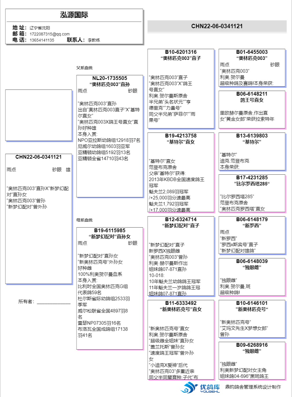 “奥林匹克003X鸽王号直女”直孙好种雄