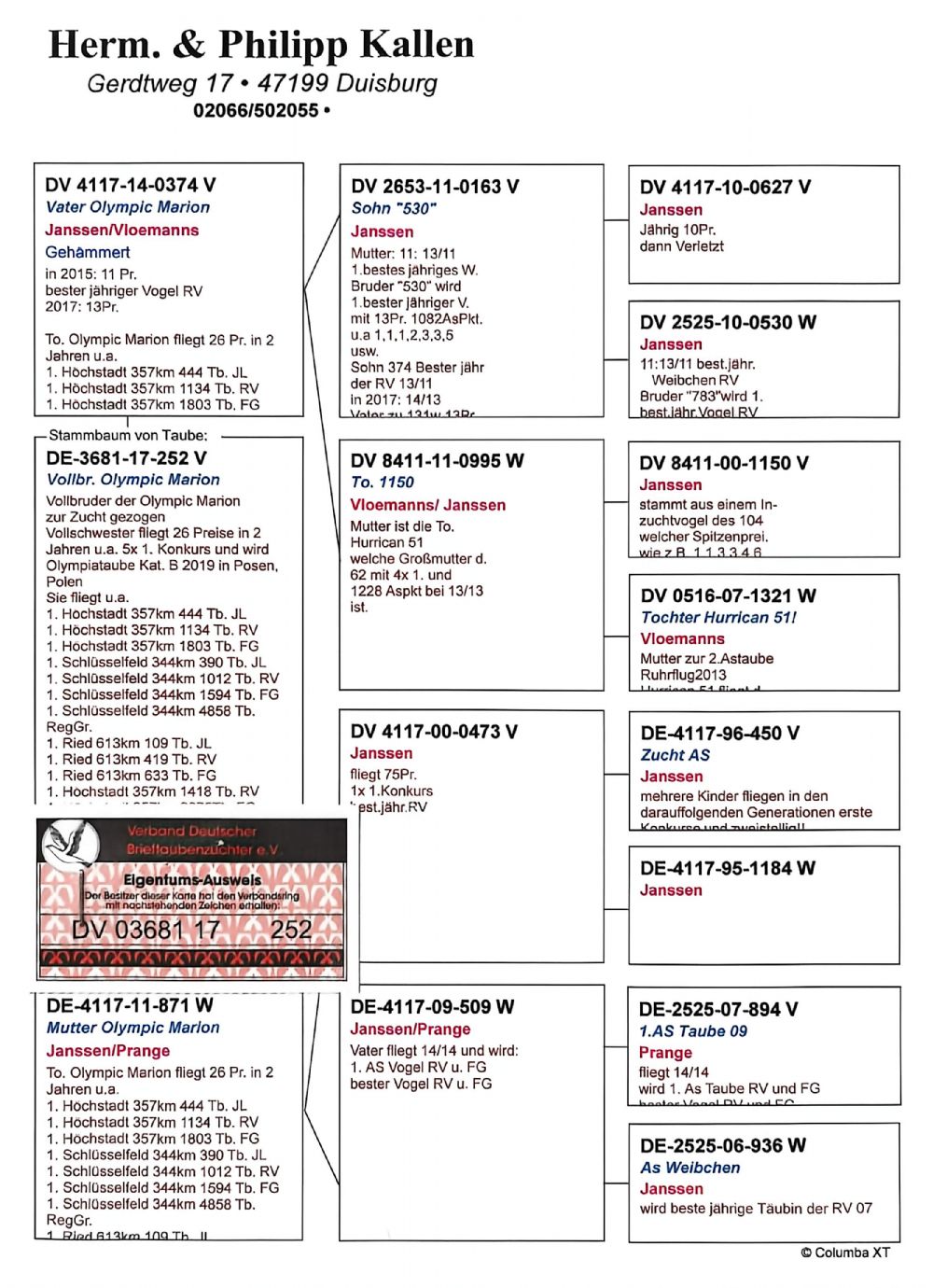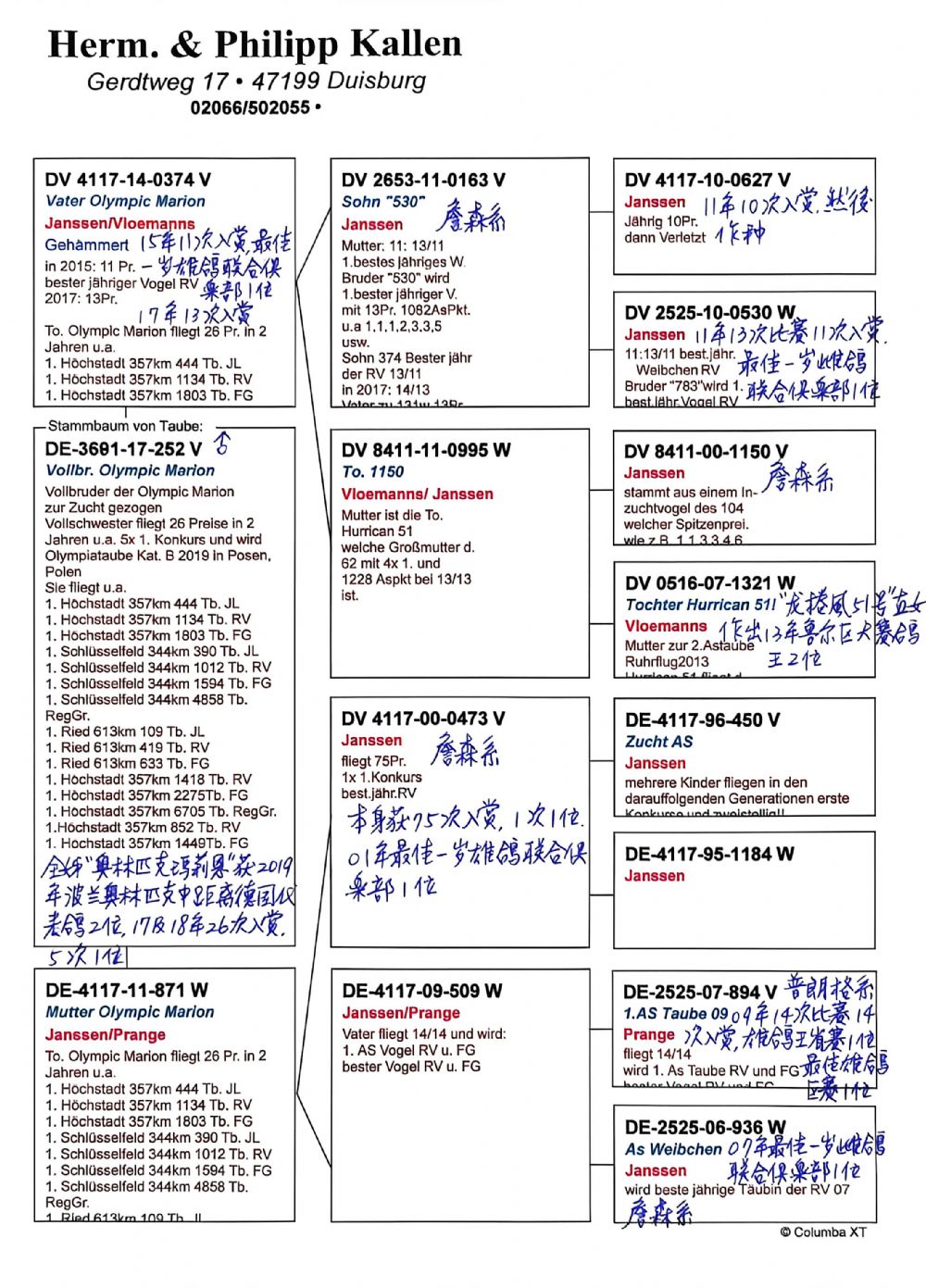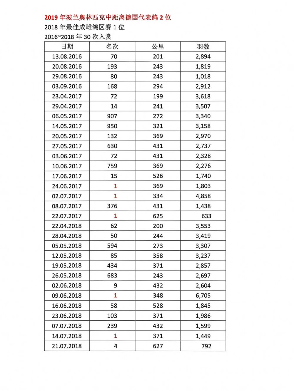 此鸽已作出公棚前十名获奖鸽