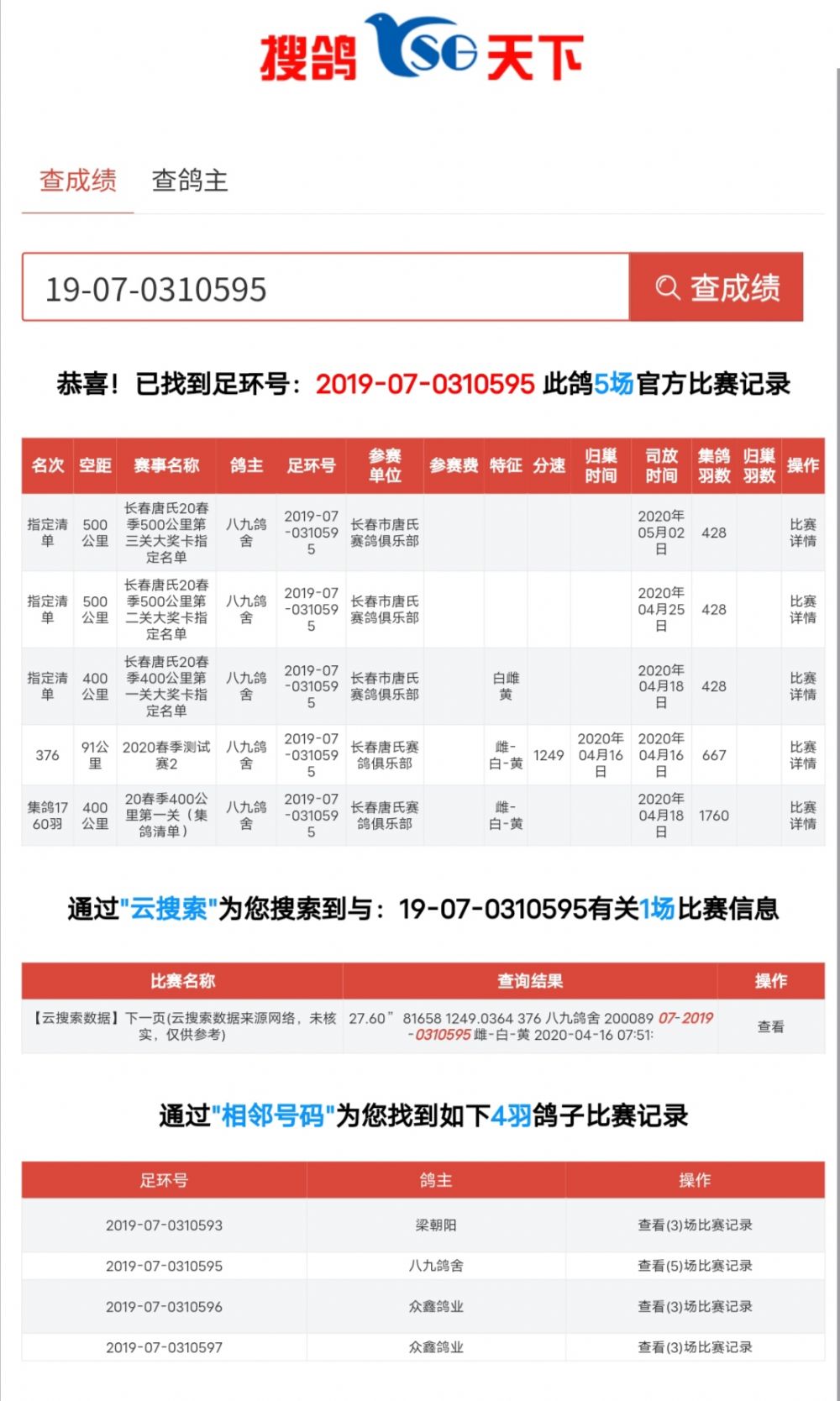 - 当前查看拍卖鸽:白,1雌400公里归巢2次500公里归巢