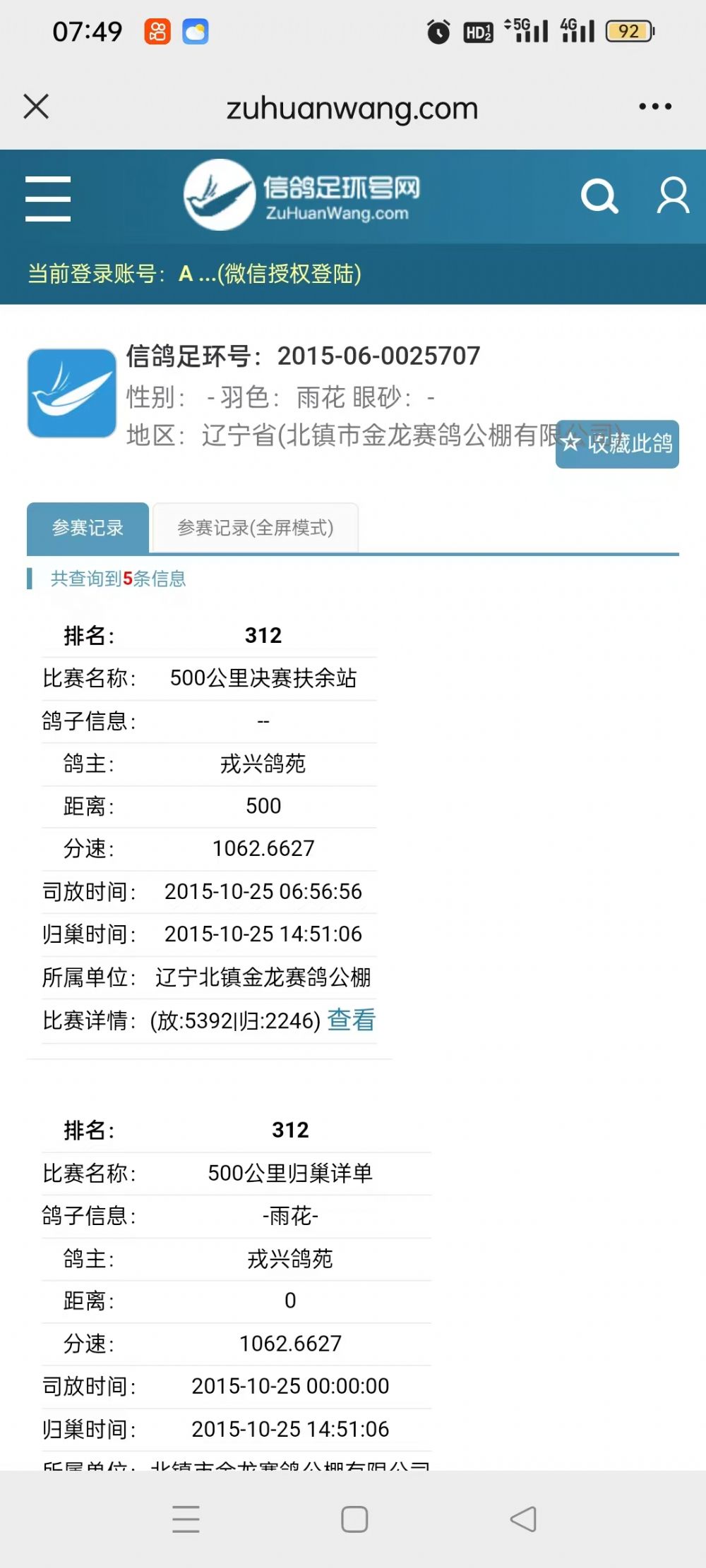 | 1660201 | 白,1雌400公里归巢2次500公里归巢 | ¥0元 | 0次 |