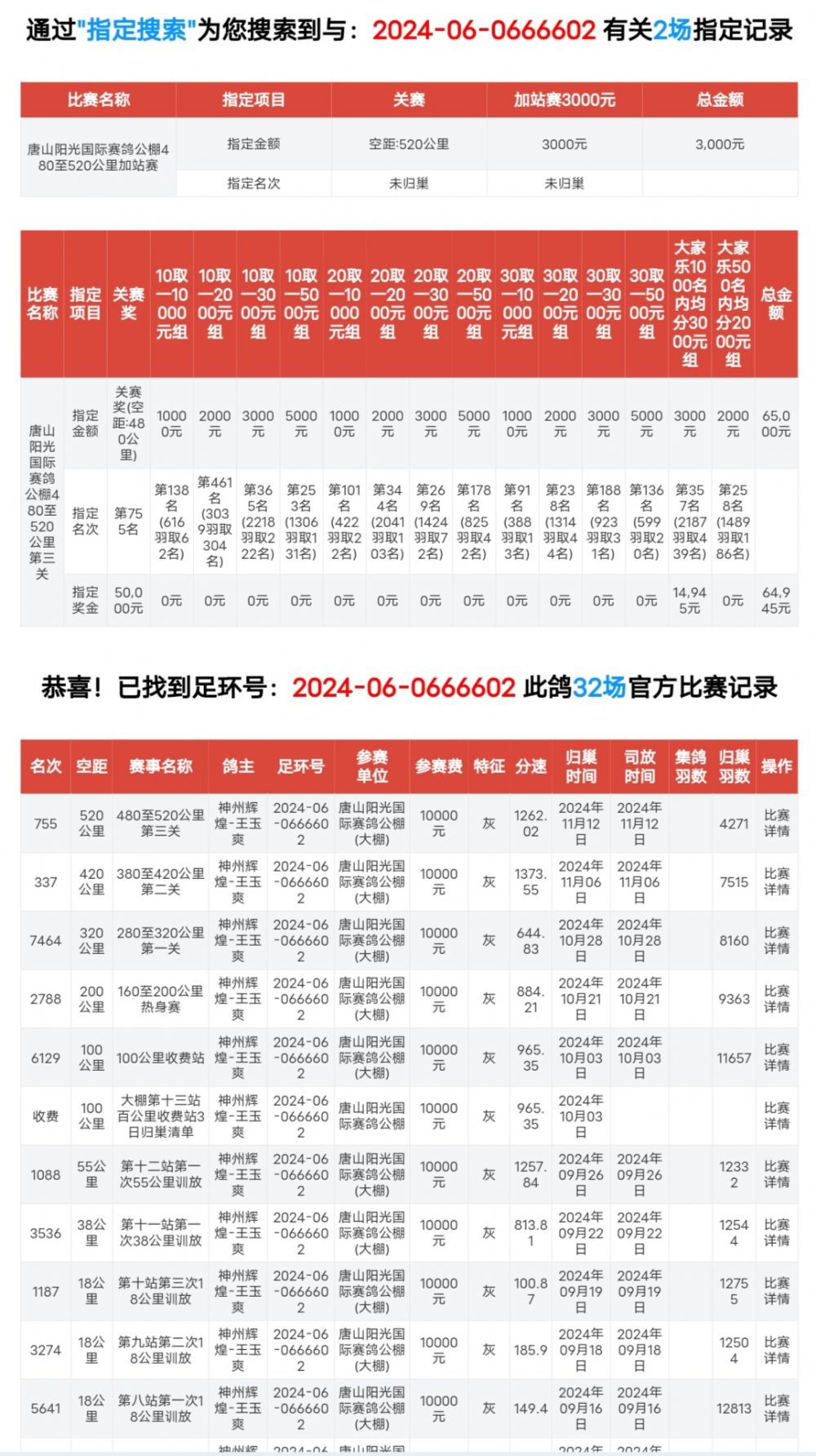 1660201 白,1雌400公里归巢2次500公里归巢 ¥0元 0次