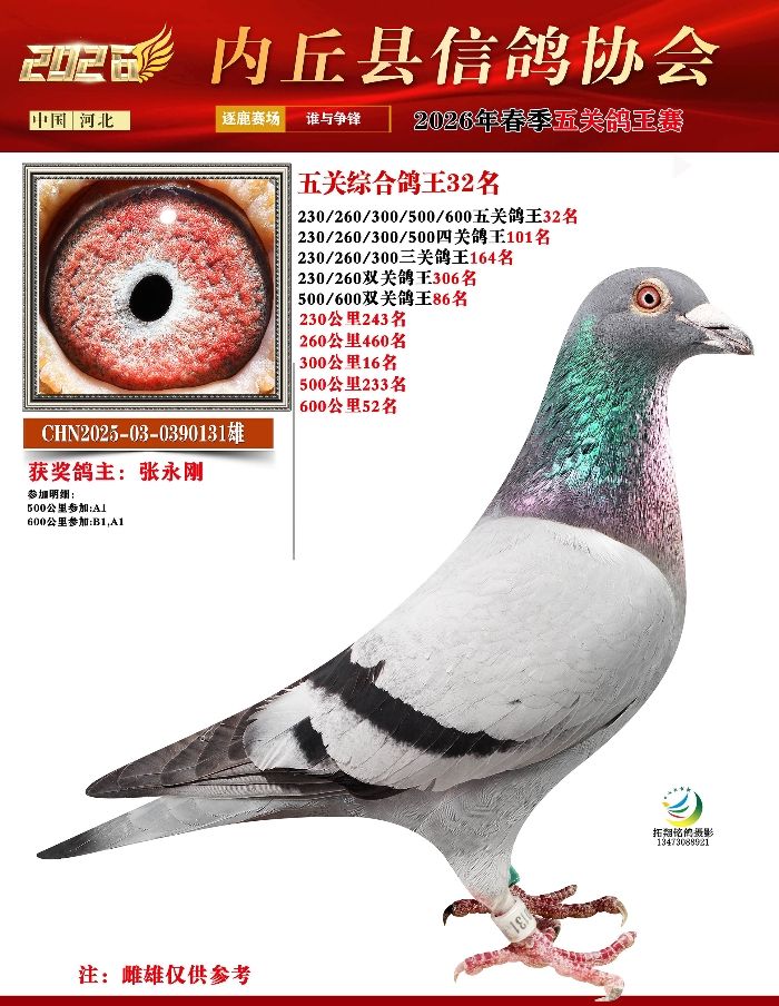 | 1660273 | 500-600公里双关鸽王39名 | ¥200元 | 0次 |