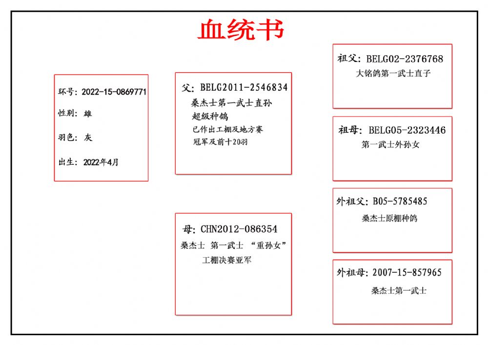- 当前查看拍卖鸽:(重点推荐)桑杰士第一武士直孙X第一武士