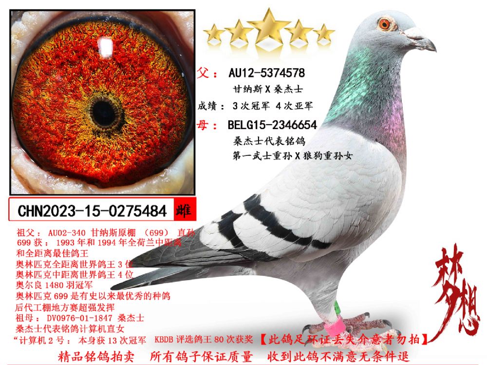 | 1660354 | 铭鸽桑杰士 晚生汤姆X狼狗号X“双关冠军三关亚军” | ¥800元 | 0次 |