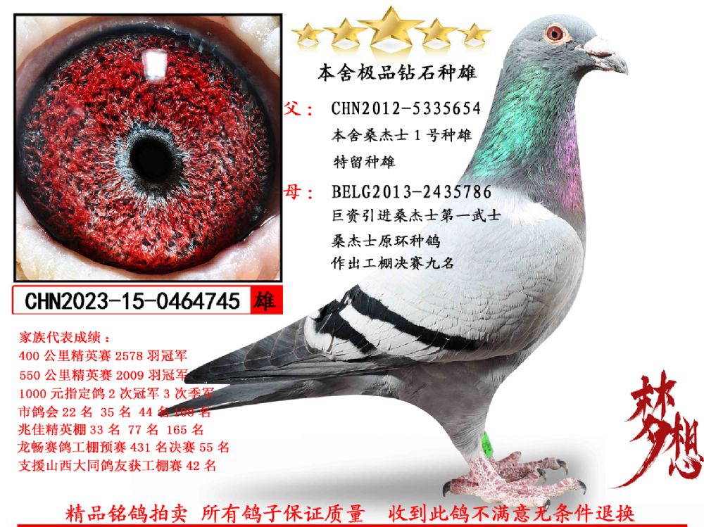 - 当前查看拍卖鸽:桑杰士特留1号种雄做出(极品功勋种雄)