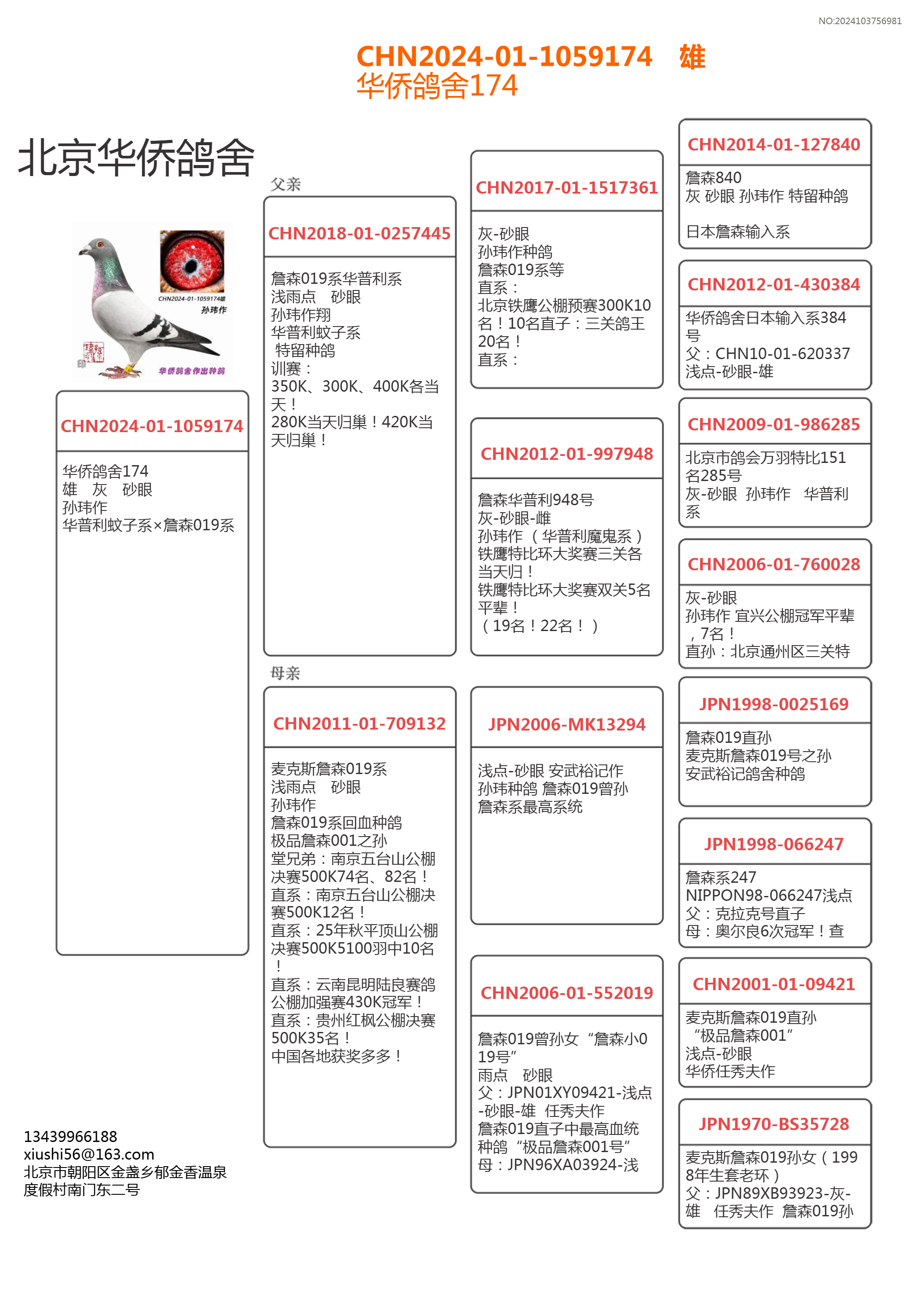 | 1660392 | 5号--詹森019多重回血种鸽-1423565-雄 | ¥1200元 | 0次 |