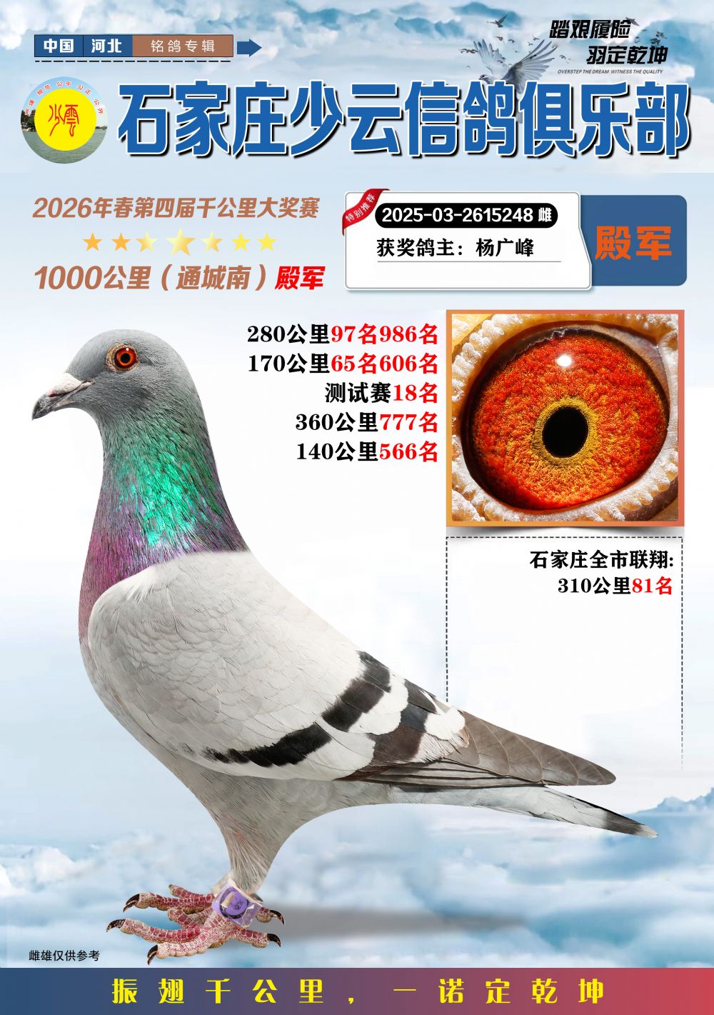 - 当前查看拍卖鸽:石家庄少云千公里4名