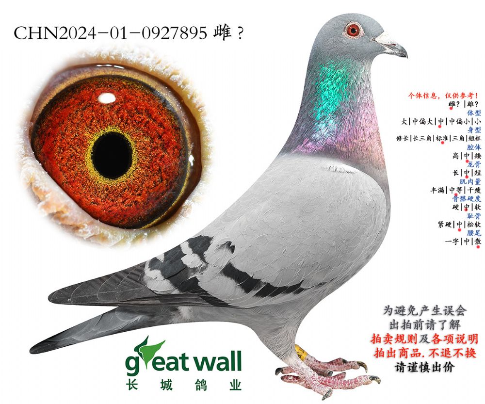 因拍卖鸽均是未做育过的种鸽或幼鸽,图内所标雌雄仅供参考,实际性别已实物为准。不做退换理由。