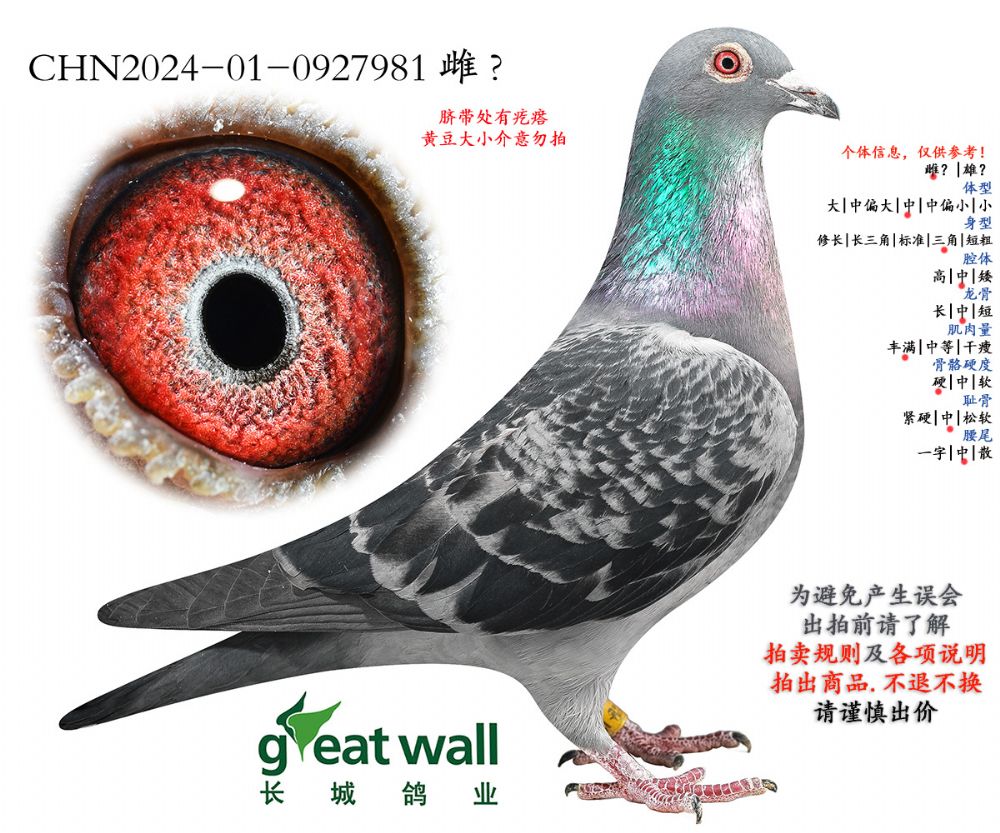 因拍卖鸽均是未做育过的种鸽或幼鸽,图内所标雌雄仅供参考,实际性别已实物为准。不做退换理由。