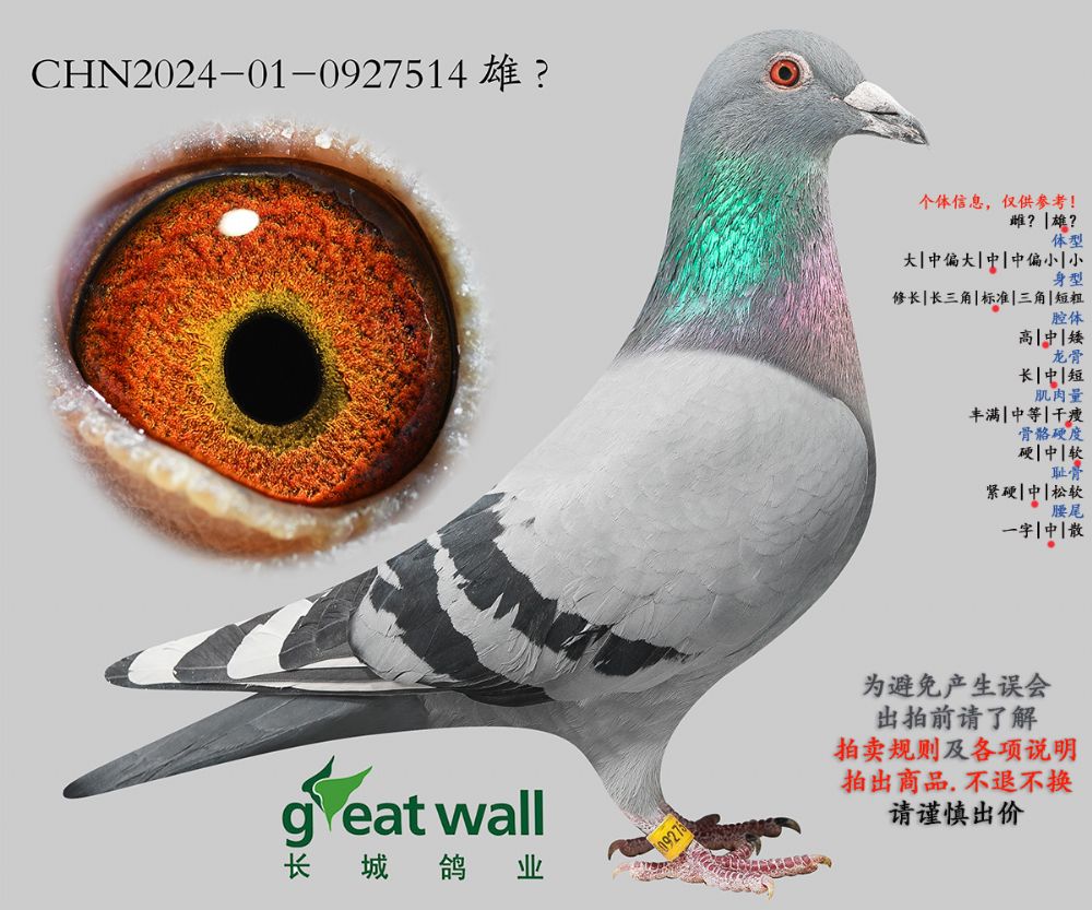 因拍卖鸽均是未做育过的种鸽或幼鸽,图内所标雌雄仅供参考,实际性别已实物为准。不做退换理由。