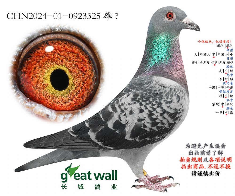 因拍卖鸽均是未做育过的种鸽或幼鸽,图内所标雌雄仅供参考,实际性别已实物为准。不做退换理由。