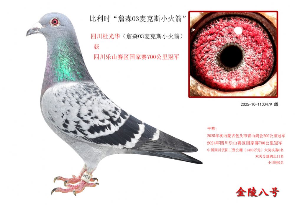 金陵八号2025年12月获山东潍坊国际公棚500公里决赛11名(拿破仑)