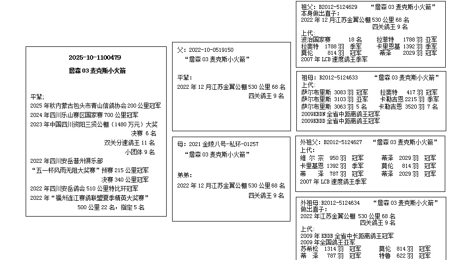 福建三明林辉2025年10月获500公里决赛冠军,指定冠军,A组冠军, B组冠军,普赛冠军,双冠鸽王亚军。 2025年6月获福建闽清鸽会350公里冠军
