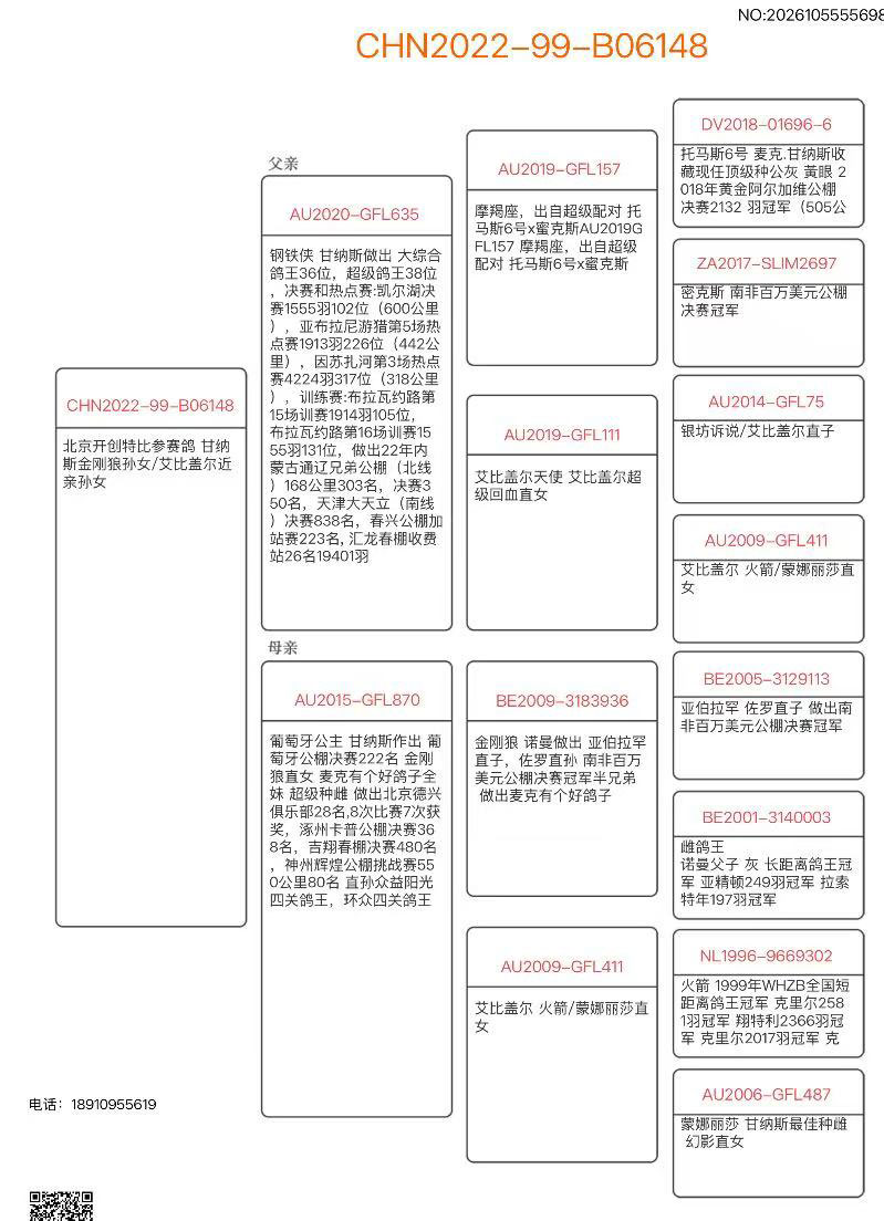 2022-99-B06148 雌 北京开创参赛鸽 甘纳斯金刚狼孙女/艾比盖尔近亲孙女/托马斯6