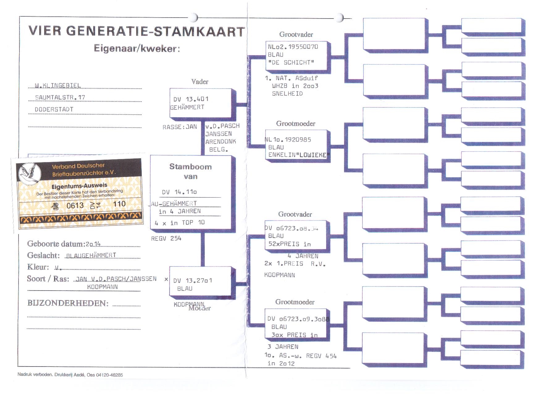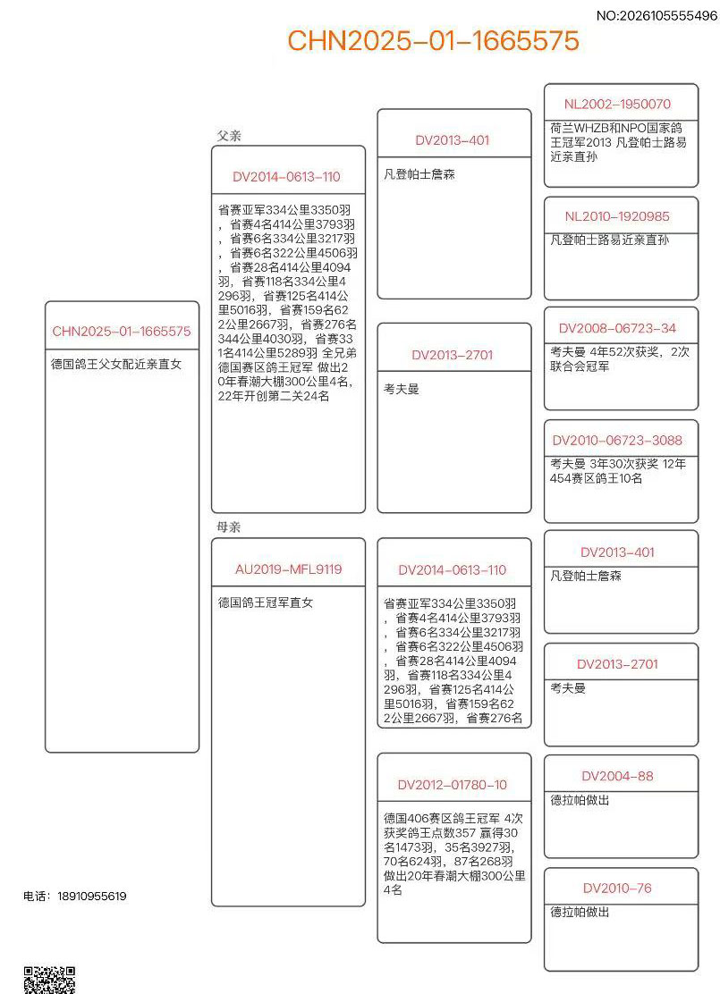 - 当前查看拍卖鸽:德国鸽王父女配近亲范登帕实