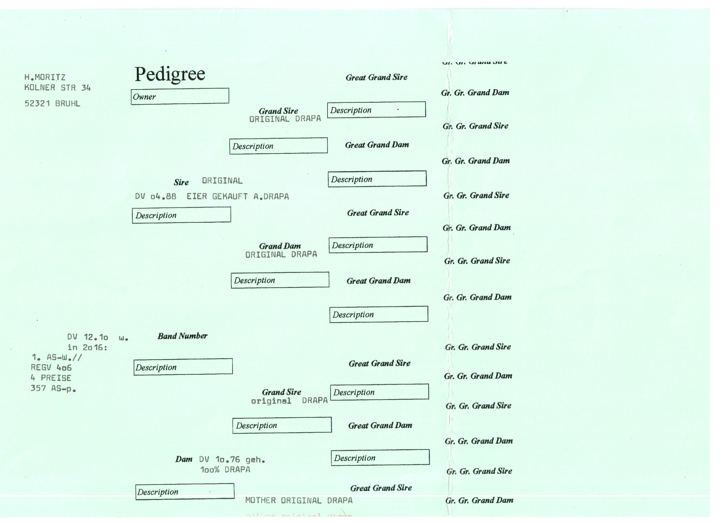 - 血统:德拉帕/考夫曼