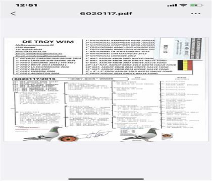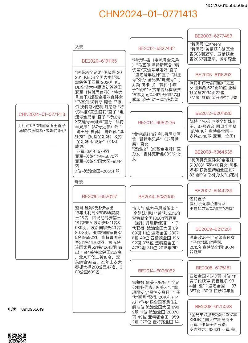 2022-01-0771413 雄 马歇尔沃特斯比利时KBDB幼鸽鸽王亚军兄弟配威姆特洛伊比利时KBDB鸽王28名直子