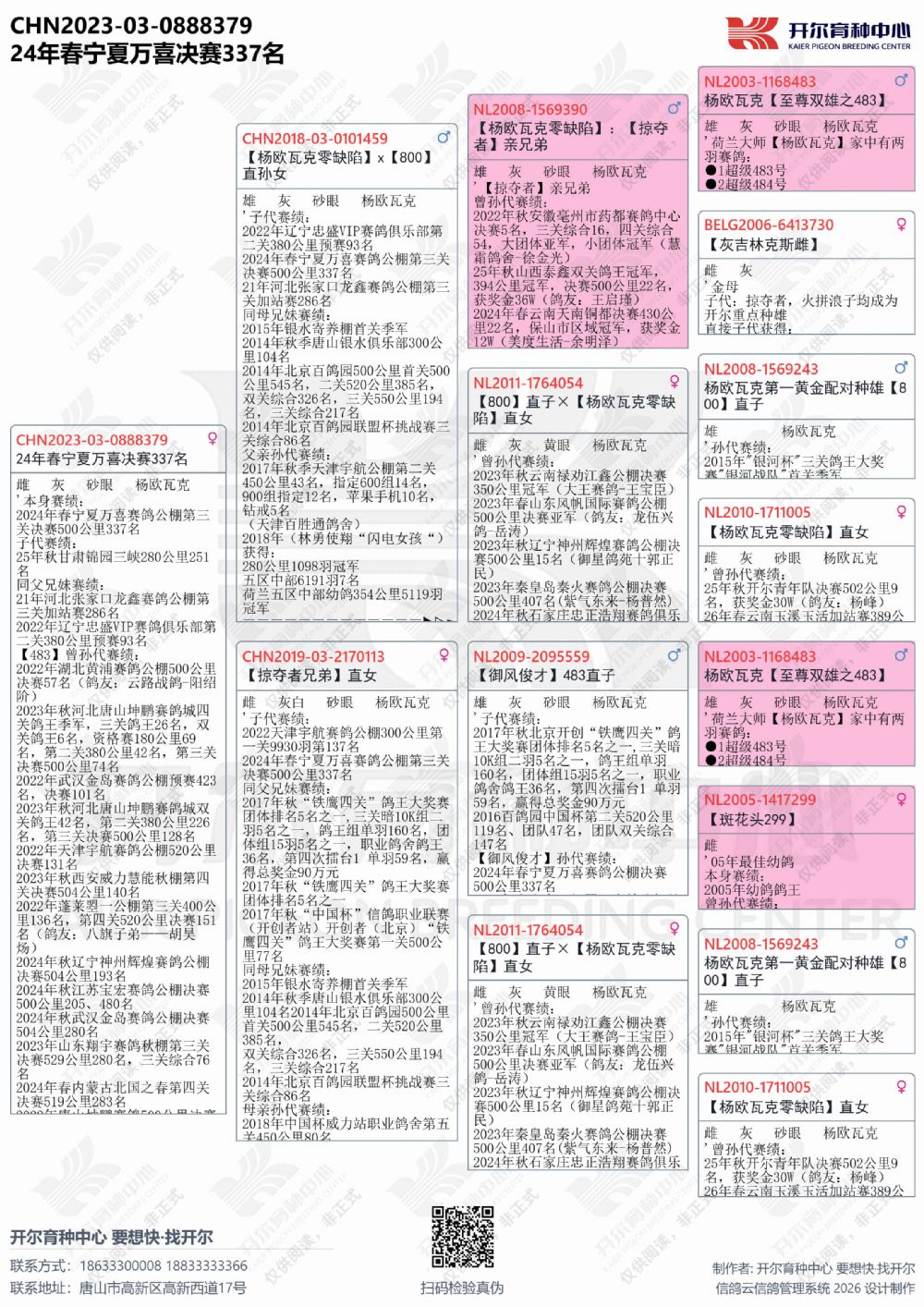 | 1660687 | 唐山阳光四关鸽王139名×唐山阳光10万组亚军 综合鸽王49 | ¥1000元 | 1次 |