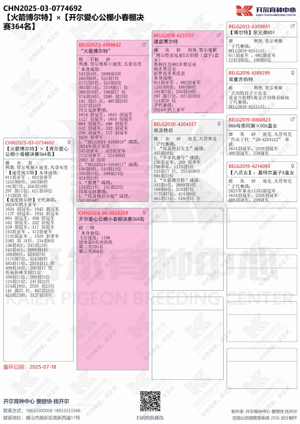 | 1660686 | 大道天成直子×开尔大棚决赛262名,双关鸽王42名 | ¥1000元 | 1次 |