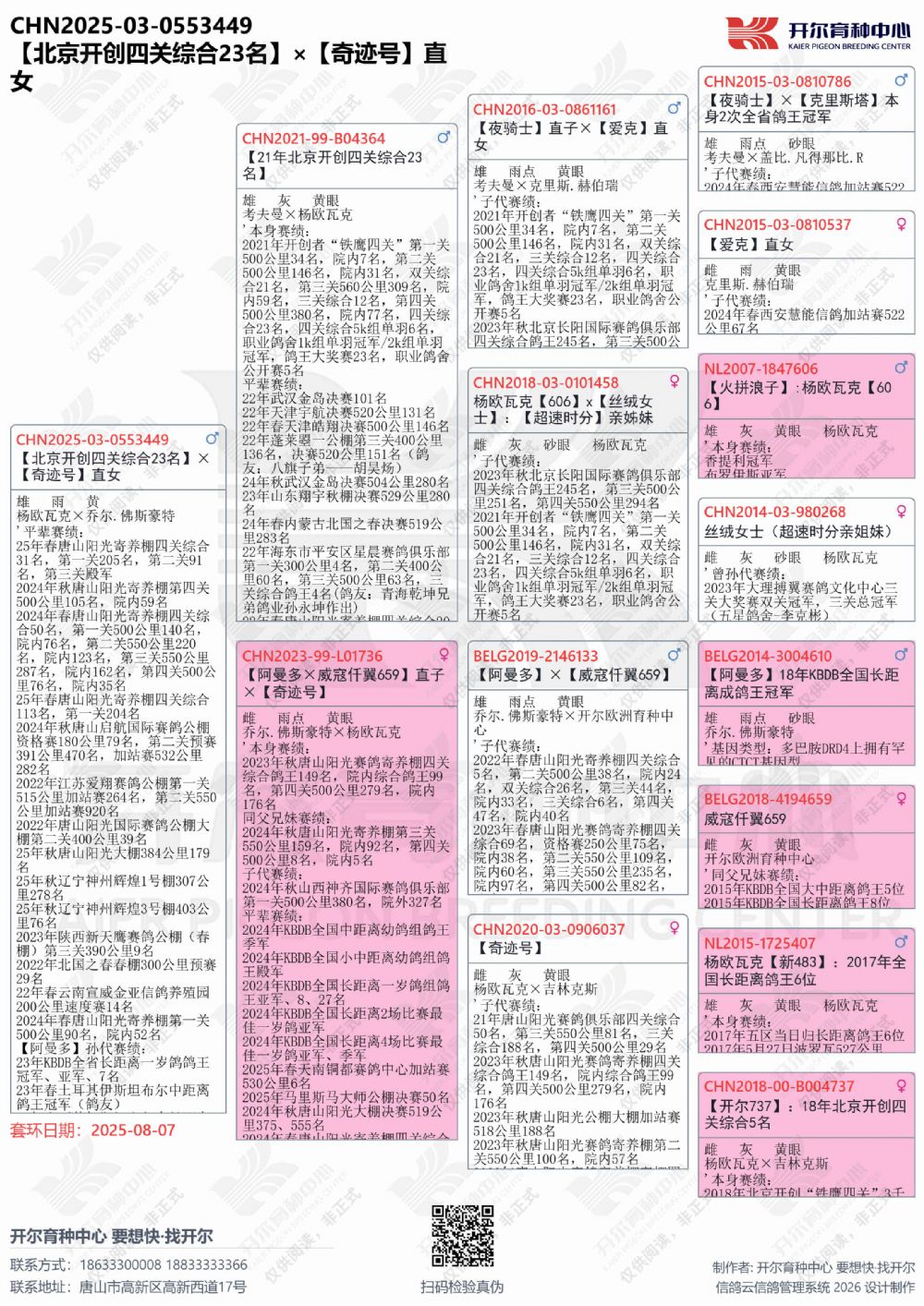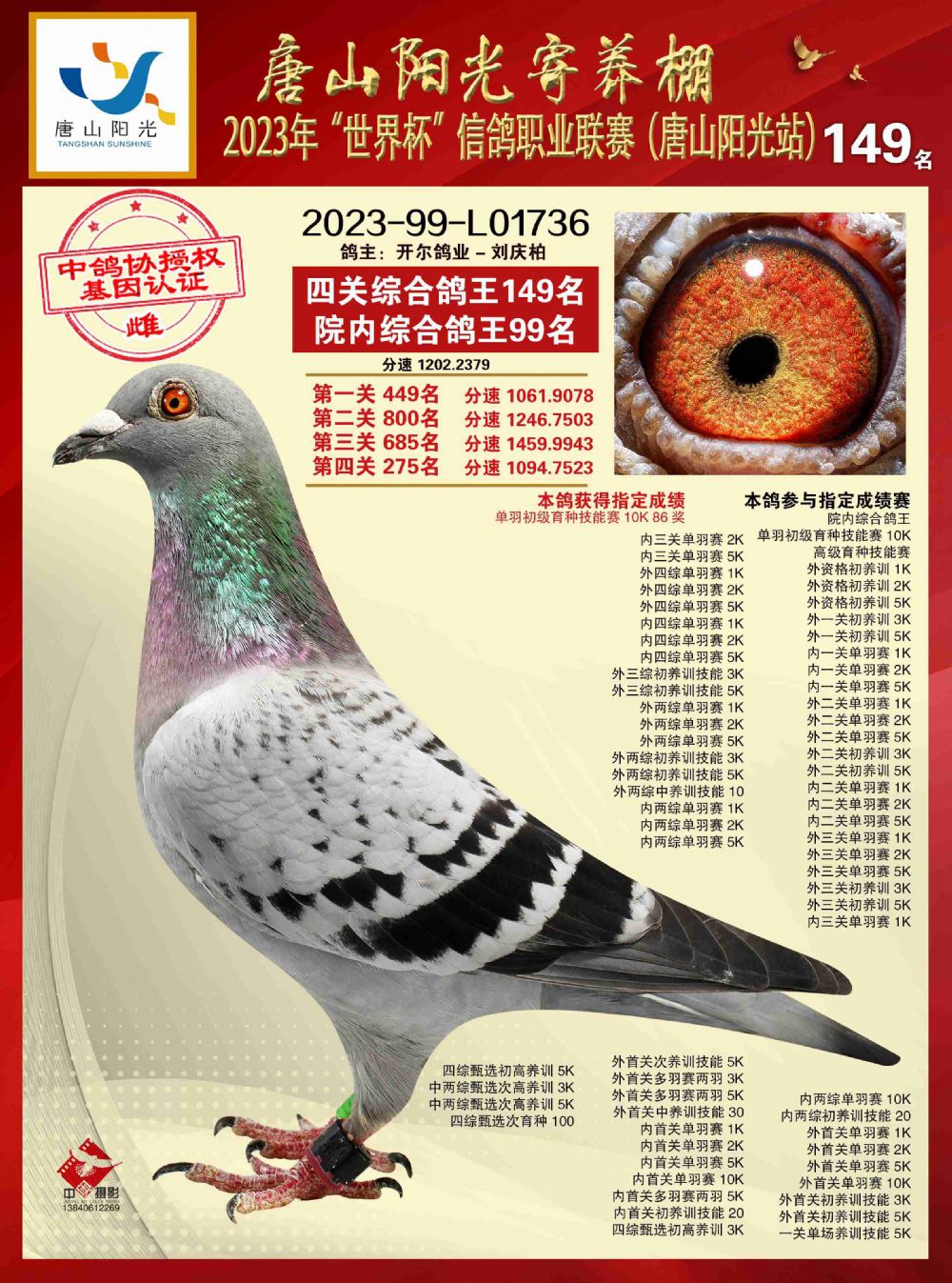 | 1660687 | 唐山阳光四关鸽王139名×唐山阳光10万组亚军 综合鸽王49 | ¥1000元 | 1次 |