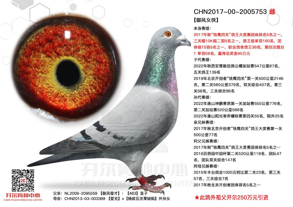 | 1660686 | 大道天成直子×开尔大棚决赛262名,双关鸽王42名 | ¥1000元 | 1次 |