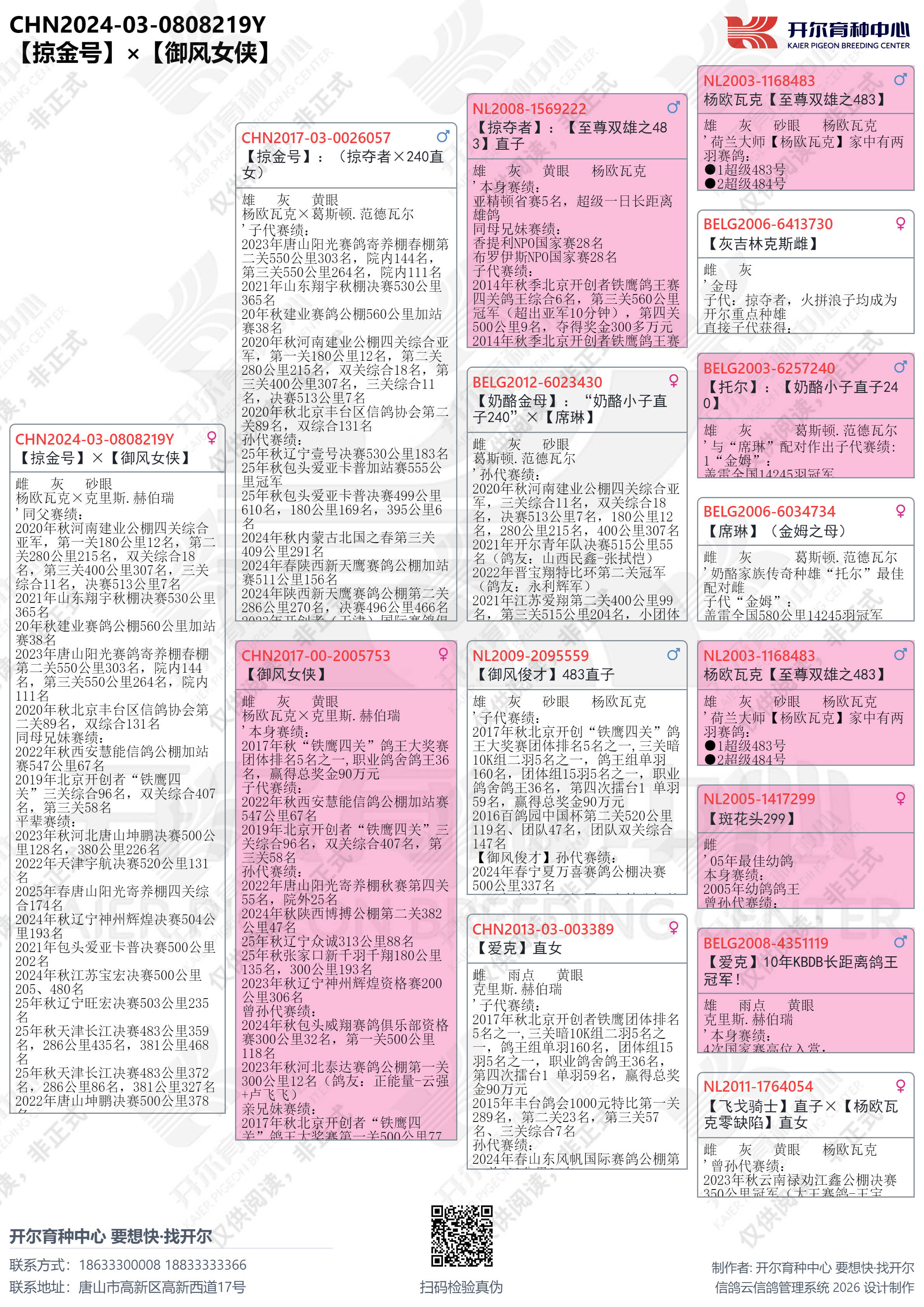 | 1660687 | 唐山阳光四关鸽王139名×唐山阳光10万组亚军 综合鸽王49 | ¥1000元 | 1次 |