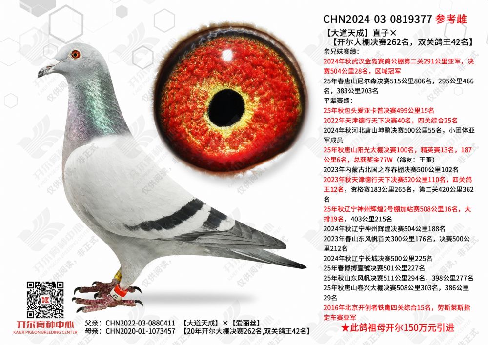 - 当前查看拍卖鸽:大道天成直子×开尔大棚决赛262名,双关