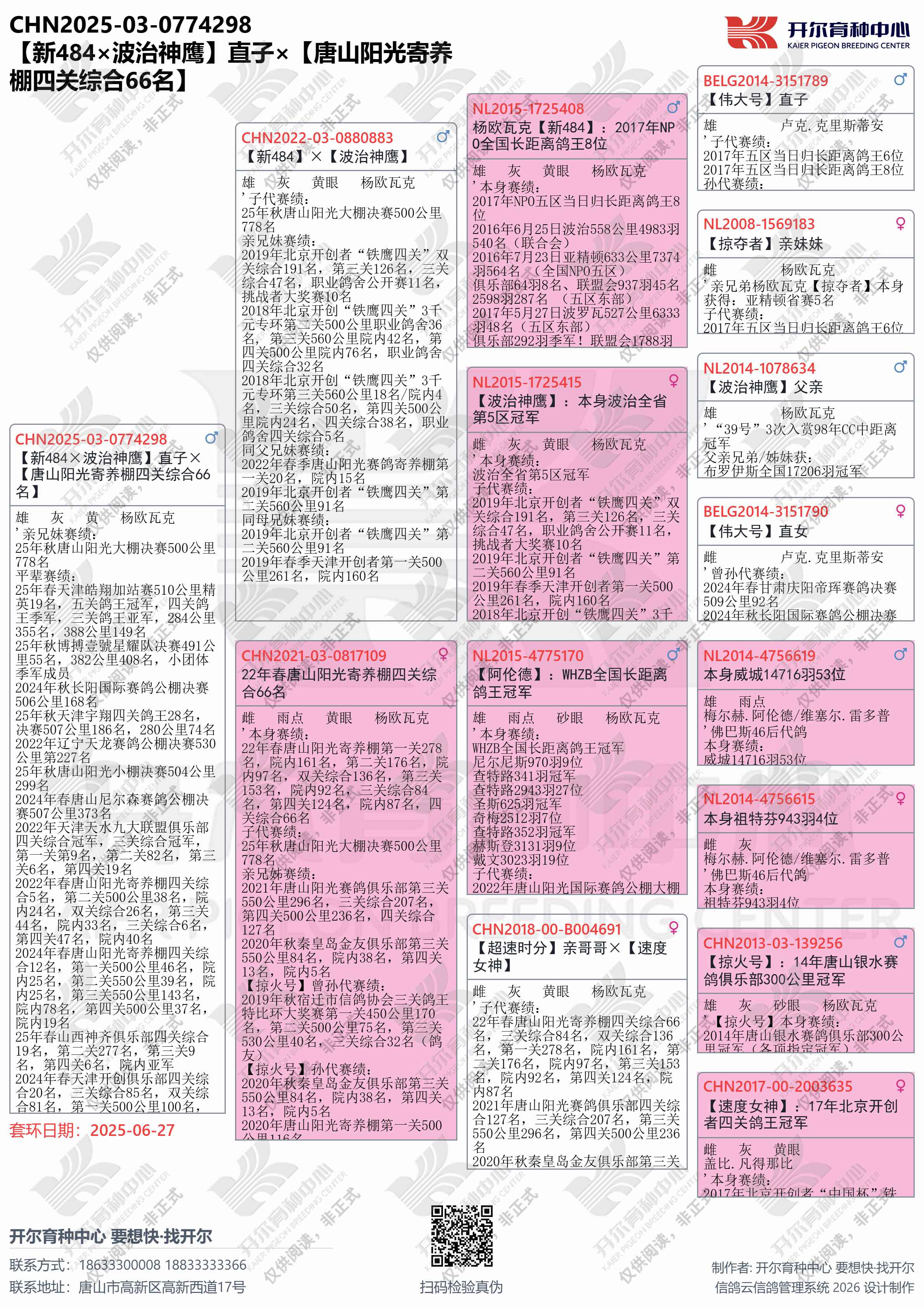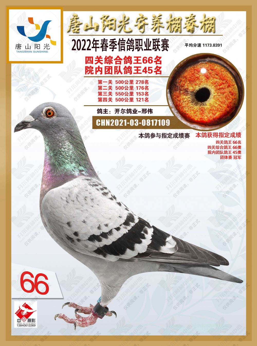 | 1660736 | 唐山阳光四关鸽王139名×唐山阳光10万组亚军综合鸽王49 | ¥1000元 | 1次 |