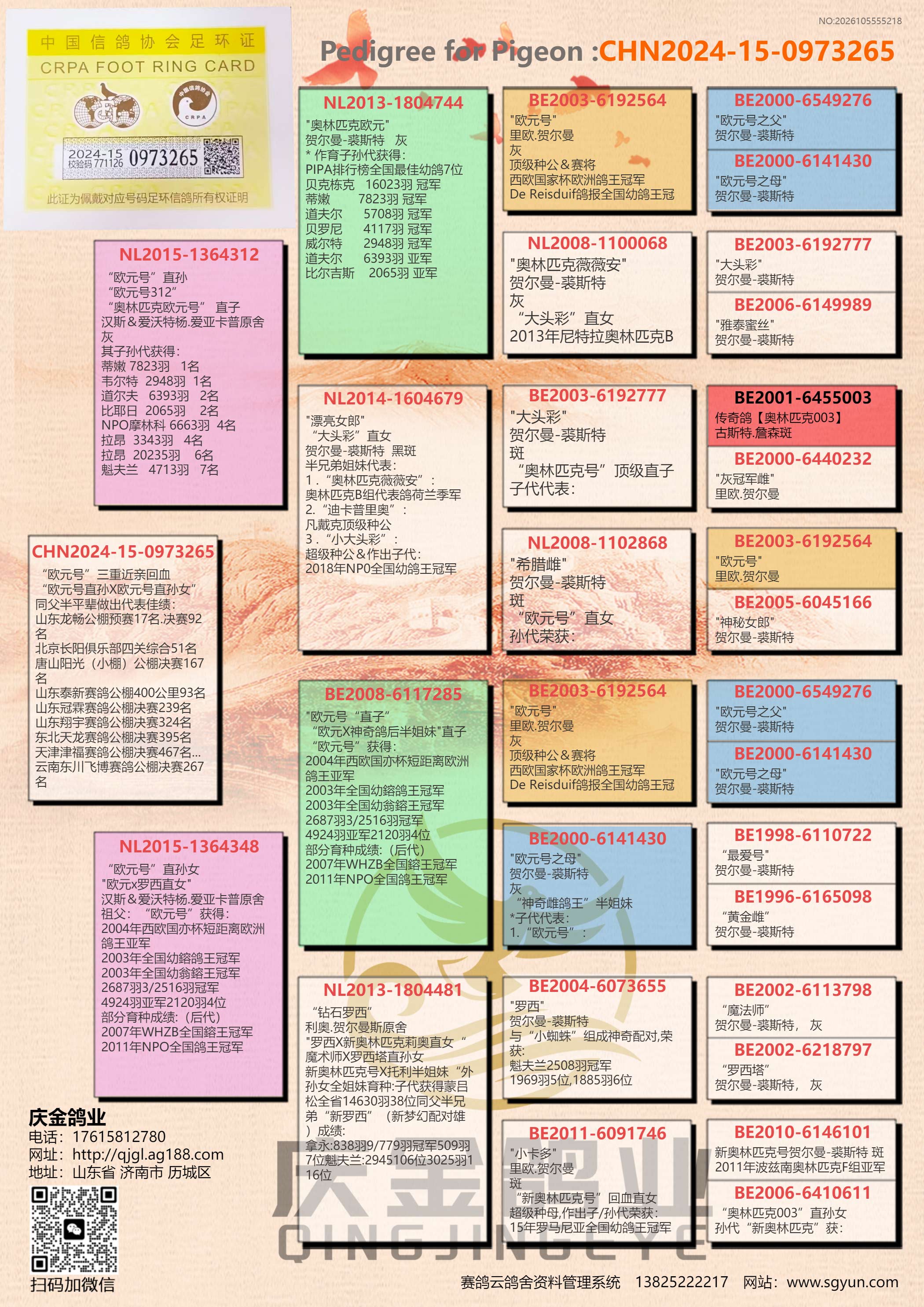 1660705 利奥.赫尔曼斯“奥林匹克麻鹰”直孙x“奥林匹克麻鹰”直孙女 ¥300元 0次