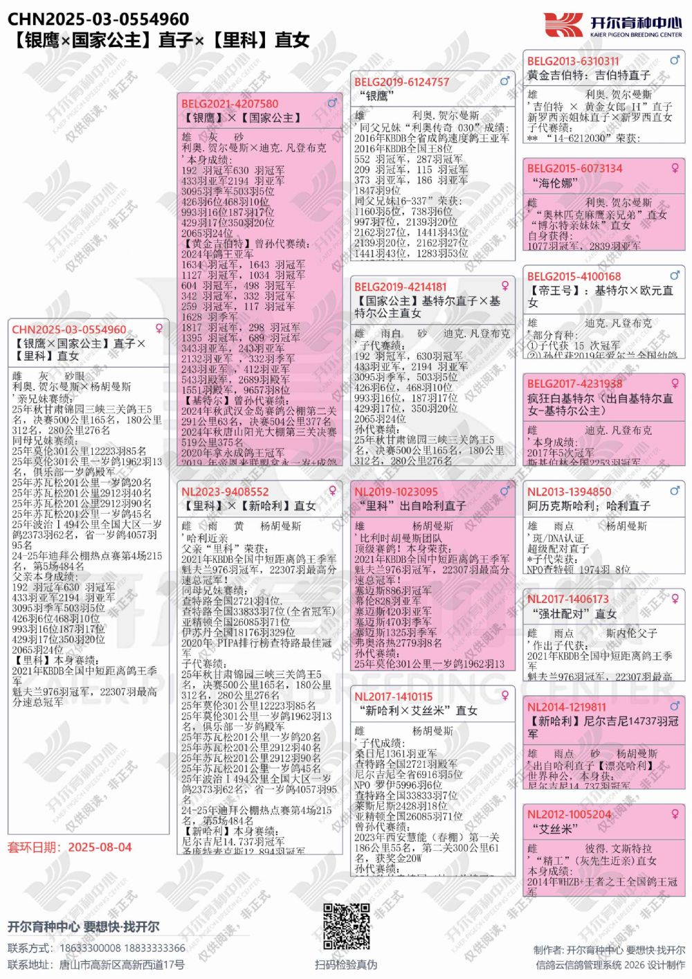 | 1660736 | 唐山阳光四关鸽王139名×唐山阳光10万组亚军综合鸽王49 | ¥1000元 | 1次 |
