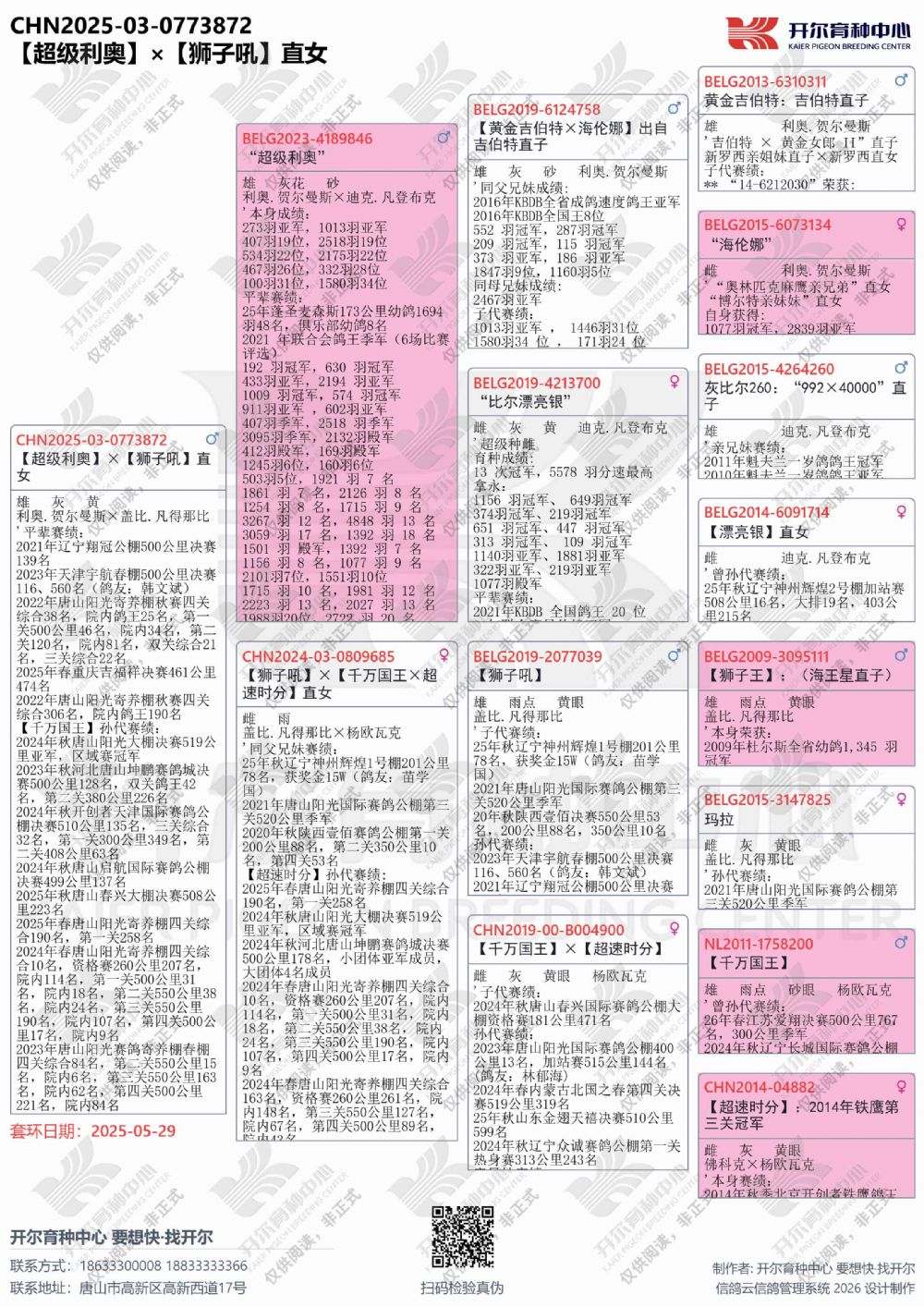 | 1660736 | 唐山阳光四关鸽王139名×唐山阳光10万组亚军综合鸽王49 | ¥1000元 | 1次 |