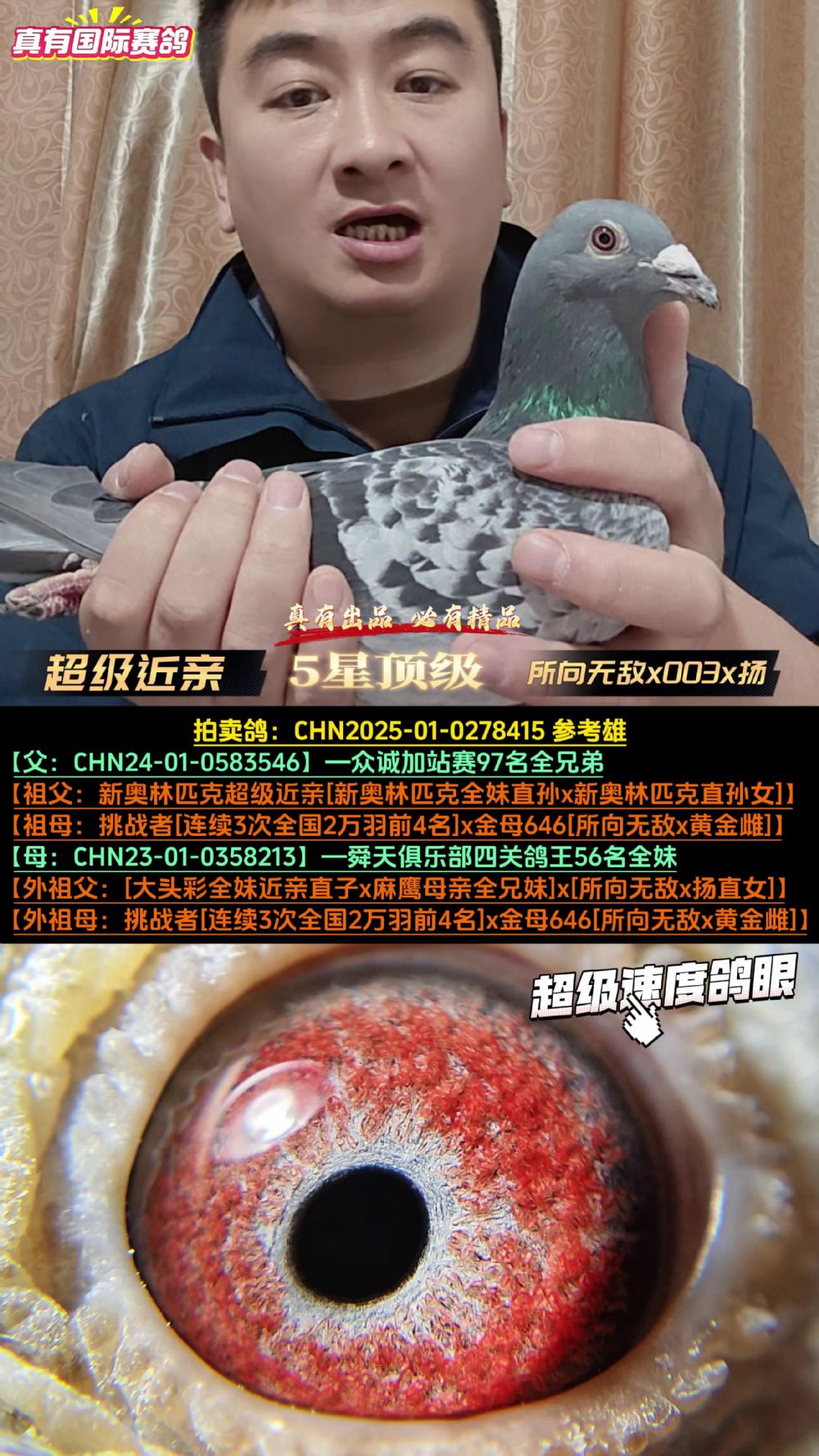 由于所有拍卖鸽均没有作育记录,因此无法100%保证雌雄的正确性,拍卖视频中的雌雄仅供参考,最终以实物为主。如有雌雄特殊要求请及时联系真有国际确认,所有拍卖鸽均享受7天免费换鸽服务(运费自理),由于拍卖形式的鸽子具备商品的唯一性,因此不支持退款服务,感谢大家的理解与支持!谢谢!