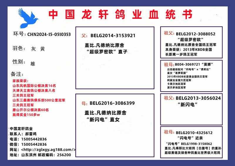 | 1660753 | 提速稳定!凡登布克“基特尔双重近亲雄”X“基特尔”孙女 | ¥0元 | 0次 |
