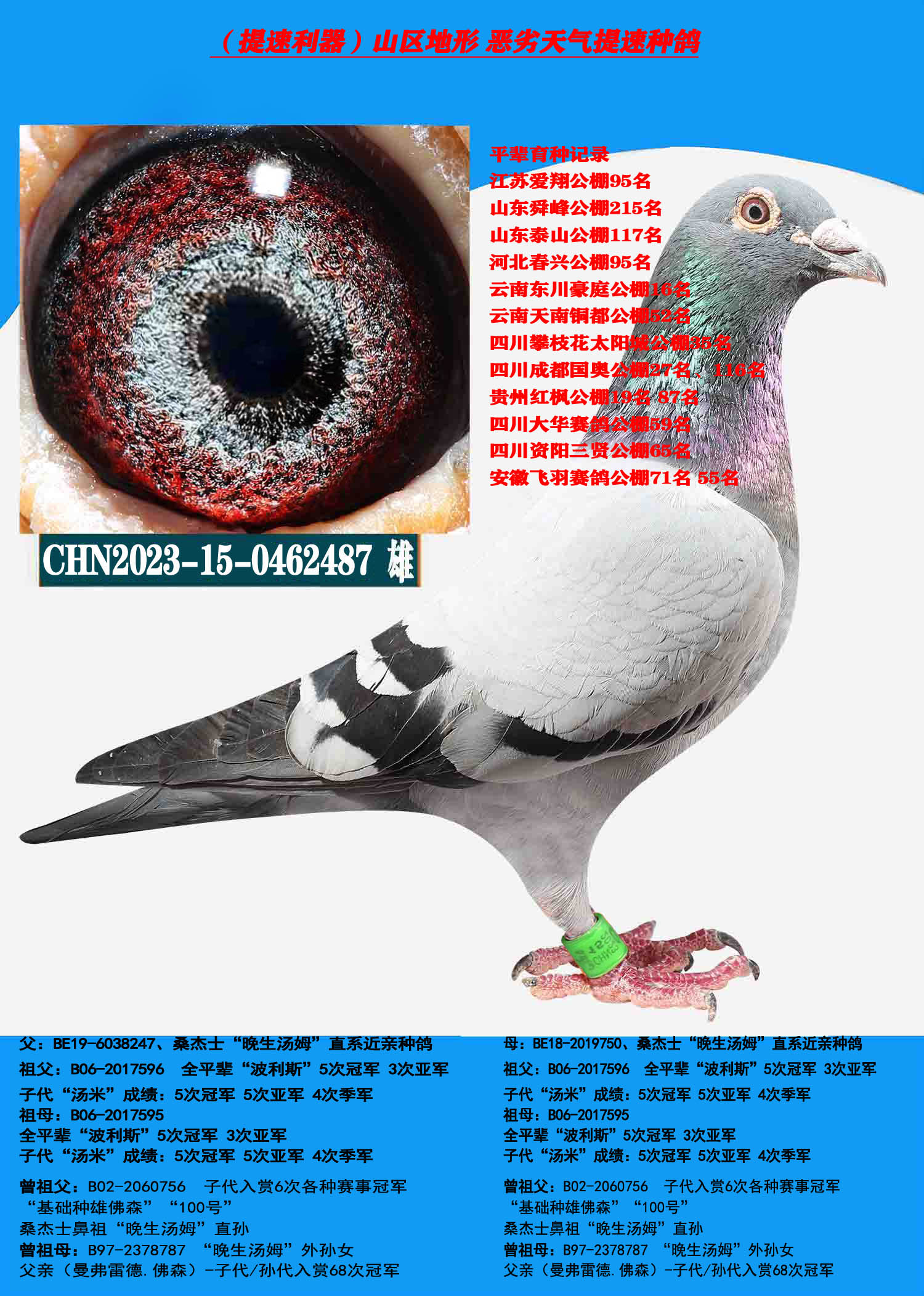 1660771 (吃苦耐劳 恶劣天气)云贵川速度种鸽 ¥300元 1次