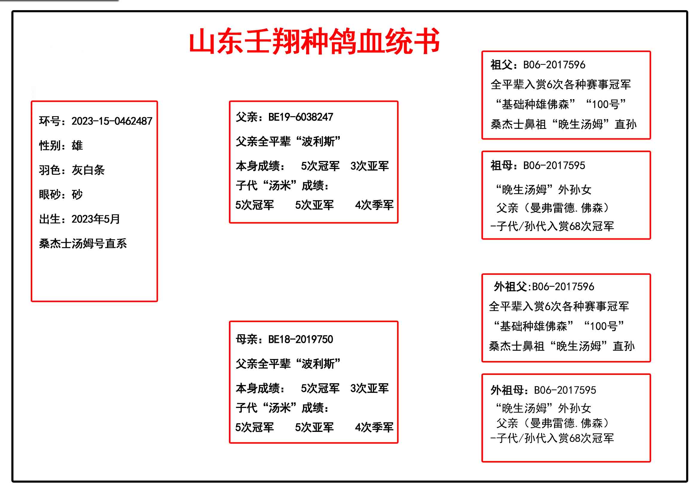 1660764 (公棚专家)杨范德帕斯“丘比特号外孙”X“无限号半兄弟直女” ¥600元 0次