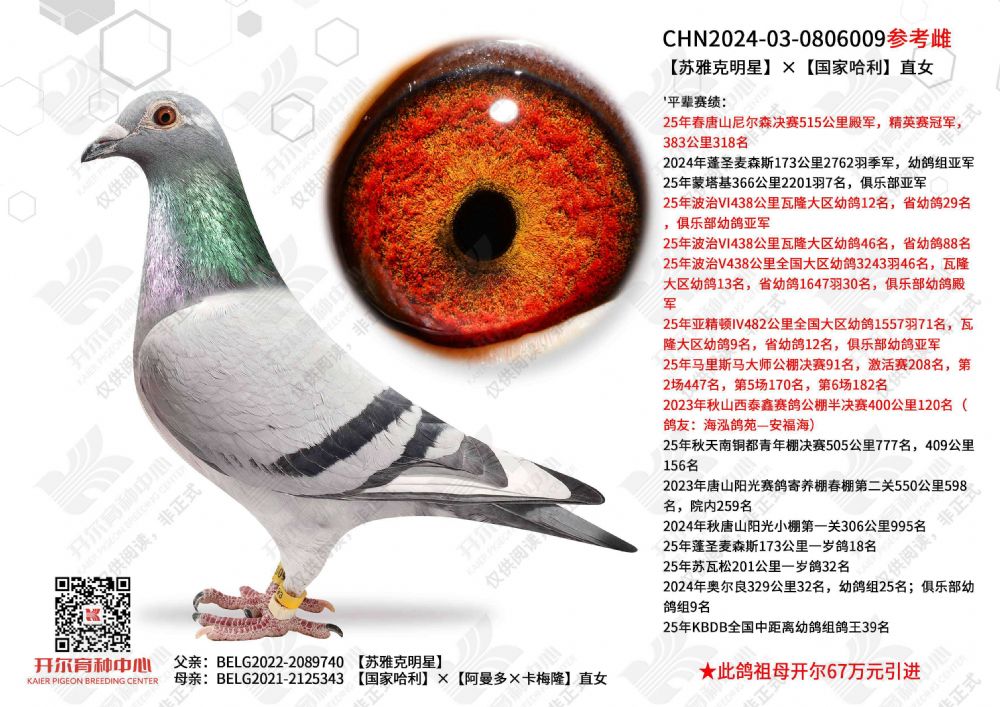 | 1660775 | 掠金号× 10年北京爱亚卡普鸽王亚军直女 | ¥1000元 | 1次 |