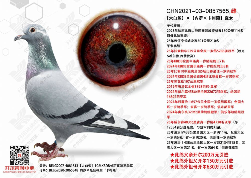 | 1660775 | 掠金号× 10年北京爱亚卡普鸽王亚军直女 | ¥1000元 | 1次 |