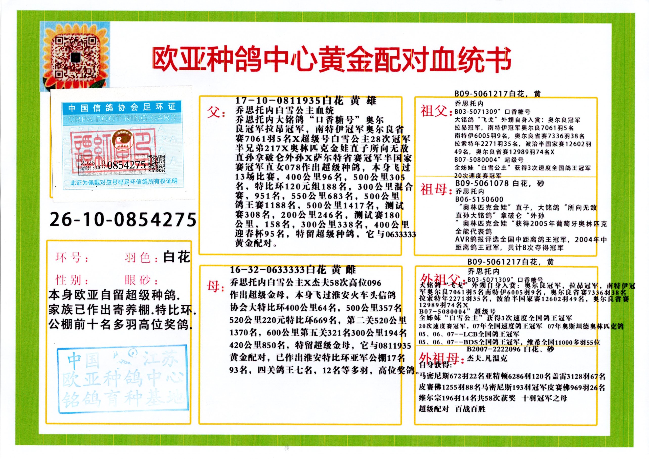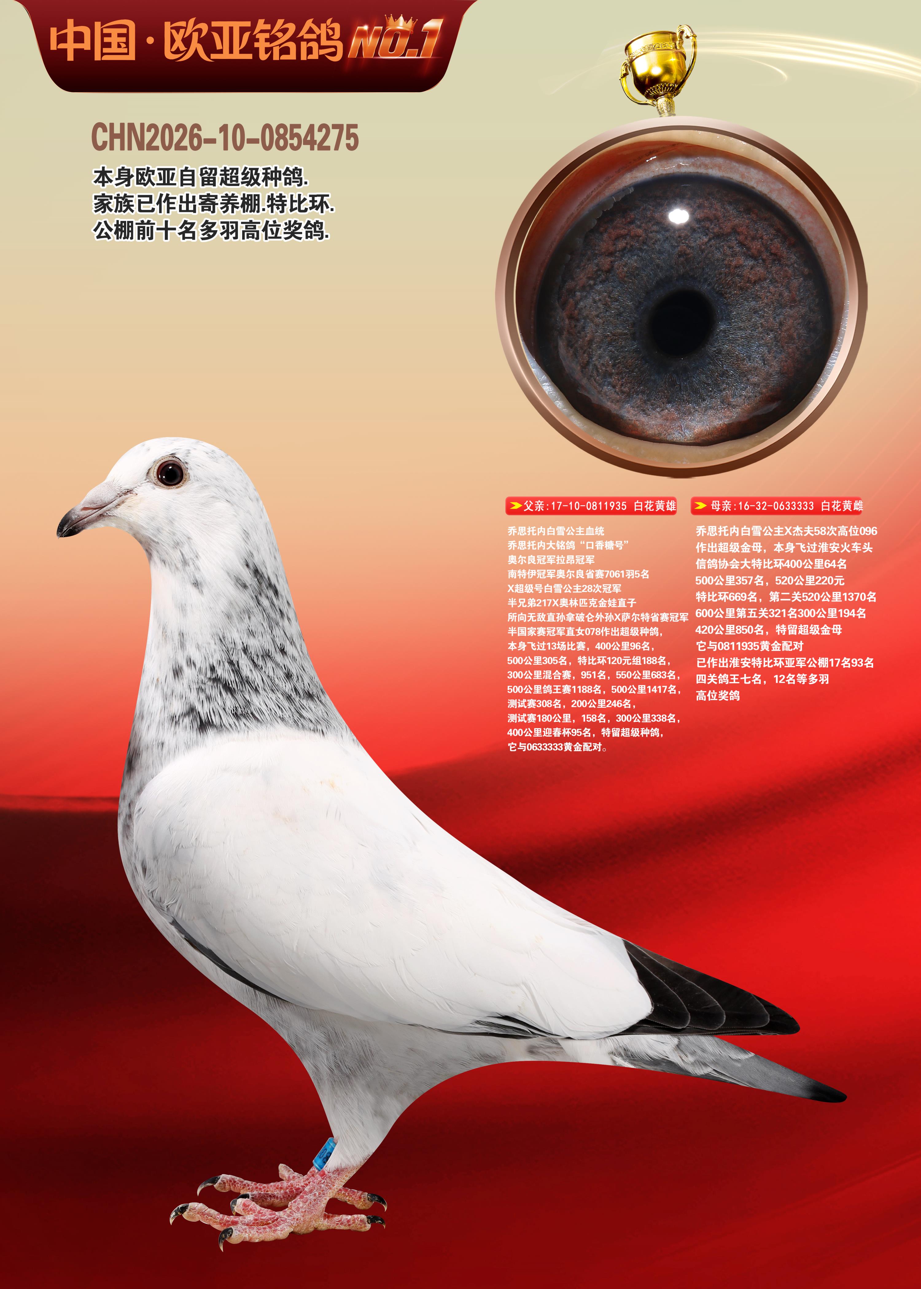 24年秋南京特比环欧亚荣获大团体冠军.小团体冠军551公里大特比13名.14名.16名.19名.20名.21名.24名.26名.27名.28名.42名.52名.54名.57名.65名.66名.68名.70名.71名.72名.74名.76名.80名.82名.83名.84名.85名.86名.90名.92名.110名.116名.121名.122名.128名.131名.158名.161名.164名.165名.166名.172名.174名.177名.182名.195名.196名.201名.205名.208名.210名.216名.253名.269名.275名.276名.294名.296名.299名,,24年秋云南天南铜都公棚决赛415名.天南铜都小棚决赛409名.云南玉活公棚决赛102名.490名.团体32名上笼二羽进二羽,天南铜都大棚506公里决赛445名。热烈祝贺河北省巨鹿县李兰生老师用欧亚泰山号血系连续十一年夺冠军,河北省国家赛冠军.全国季军等多次前十名高位,扬州王军王总用欧亚利奥24年春季获山东翔宇公棚决赛33名盖比53名。南京刘正龙刘总用欧亚盖比获得24年秋山东潍坊国际公棚决赛42名.精英赛30名.三关鸽王71名.决赛86名.加站赛16名.南京市特比环A组鸽王9名.B组鸽王5名.6名.C组鸽王5名.精英赛冠军4名.技能赛A组冠军4名.5名.秦淮区特比环荣获15名.46名.48名.87名。四川西昌徐亮徐总用欧亚利奥获得凉山州聚友决赛177名.第二关亚军双关鸽王19名.三关鸽王105名.云南豪庭公棚决赛603名。热烈祝贺24年四川重庆翔园鸽舍用欧亚泰山号荣获春季400公里冠军.秋季500公里冠军,河北王总用詹森X利奥获得千羽千翔公棚400公里冠军,广东蔡楷焕荣获24年秋爱好者 赛鸽俱乐部三关鸽王季军.一关420公里99名.二关450公里11名.三关520公里32名.单关季军.7名.12名,江西李卫兴荣获贵州红枫公棚8名.共翔俱乐部寄养棚四关综合鸽王30名.一关400公里78名.二关500公里55名.三关520公里37名.四关500公里57名.同父母获公棚18名.雷鸣获得武汉黄浦育翔中心冠军,四川陈文获得四川明鸿俱乐部300公里梦幻2名.3名.4名.9名.10名.13名.14名.15名.31名.34名.40名.41名.42名.43名.69名.71名.72名.73名.74名.94名.95名.97名.98名.99名.419公里决赛荣获总冠军7名.总共归巢9羽,四川徐亮获豪庭决赛603名,山西郑勇获得山西泰鑫公棚决赛255名詹森红狐,热烈祝贺马总获得开尔(飞跃队)决赛9名获奖金1310000万元.第一关52名,天津津福资赛180公里96名.获奖金429543万元,欧亚支持全国鸽友24年秋多人报喜 祝大家取得更好成绩,给欧亚报喜鸽友欧亚决定给每人赠送一羽超级种鸽。欧亚俱乐部特比环多关鸽王成绩:15年秋淮安特比环黑色星期一全会上笼9700多羽,当天无鸽归巢,第二天全会归巢357羽,本舍归巢158羽.前十名八羽.前一百名归巢57羽,16年春季获五关鸽王总冠军,总亚军四名.六名.七名.九名.十名.晶艺俱乐部520公里冠亚季军5名.6名.7名.9名.11名等,火车头冠军.季军6名.8名.9名.10名,16年秋晶艺俱乐部特比环520公里亚军.季军4名.6名.7名.9名,15年春南京白下特比环冠军.亚军.季军6名.7名.8名.9名.10名.指定鸽A B组获得冠军.亚军.季军4名.5名.,17年淮安特比环亚军.4名.5名.7名.8名.10名.六关鸽王总冠军.4名.6名.9名.10名,寄养棚宿迁刘总20羽特比环获冠军.季军.4名.7名.8名.9名等。18年荣获万羽特比环六关鸽王总冠军.总亚军.总季军.6名.8名.十名.单关四羽冠军.二羽亚军.四羽季军.前十名27羽。19年秋万羽特比环六关鸽王总亚军.总季军.5名.8名等,单关二羽冠军.三羽亚军.一羽季军前十名31羽。20年秋淮安市鸽会四关特比环大赛风雨无阻鸽王亚军.鸽王六名,金品俱乐部万羽特比环六关鸽王总冠军,总亚军.四名.五名.六名.七名.八名.十名.前二百名鸽王35羽,单关冠亚季军前十名四十多羽,火车头五关鸽王季军.六名.八名.前二百名鸽王十七羽。20年春荣获淮安五区一市四关鸽王总冠军.亚军.四名.八名.九名。21年秋荣获金品万羽特比环大赛六关鸽王总亚军.总季军.四名.七名.九名.十名.单关冠亚军季军前十名三十多羽。火车头协会鸽王六名.七名.十名.单关前十名十七羽。22年秋荣获鸽王总冠军.总亚军.5名.7名.8名.9名.11名.单关冠亚季军前十名三十多羽,第一关单关前二百名四十多羽,第二关前二百名三十多羽,第三关前二百名四十多羽,第四关前二百名四十多羽,第五关前一百名53羽。23年秋荣获鸽王季军.五名.八名.十名.13名.17名.20名.27名等多羽鸽王.单关前十名二十多羽。公棚.寄养棚部分成绩:16年秋宁夏黄河公棚总冠军电脑戈马力指定通炮冠军,17年送八羽参赛获得鸽王八名进奖四名,支持韩总荣获八名。支持鸽友荣获宁夏中卫公棚决赛总冠军.精英赛冠军,支持18年宁夏黄河公棚决赛冠军詹森X泰山。安徽鼎博寄养棚院内外四关鸽王总冠军.鸽王十七名.三十七名同窝,鸽王39名.42名.58名.67名。18年山东公棚预赛冠军.决赛65名.送八羽进奖五羽.指定获奔驰汽车一辆。支持鸽友获得云南蓝云公棚冠军.盖比X佛卡门。支持鸽友荣获云南银集公棚决赛冠军 詹森427X520血系 速度赛6700羽冠军。17年荣获金马俱乐部寄养棚四关鸽王总冠军.季军.六名.八名.第一关冠军.亚军.季军四名.七名.十一名.金牌教练奖。支持鸽友18年北京费翔公棚预赛九名电脑X桑杰士,支持鸽友荣获陕西威力公棚决赛11名.内蒙古临河寄养棚四关鸽王六名.詹森配泰山,支持河北王总用欧亚詹森427配胡本喜获20年秋开尔青年棚季军。云南东荣公棚16年预赛冠军.决赛77名.17年决赛12名.詹森红狐X泰山,17年平安公棚决赛4名 詹森427。欧亚获得21年金母寄养棚第一关四名.第二关5名.第三关5名.6名.7名.10名.三关鸽王总冠军,四关鸽王14名.十羽鸽王。支持河