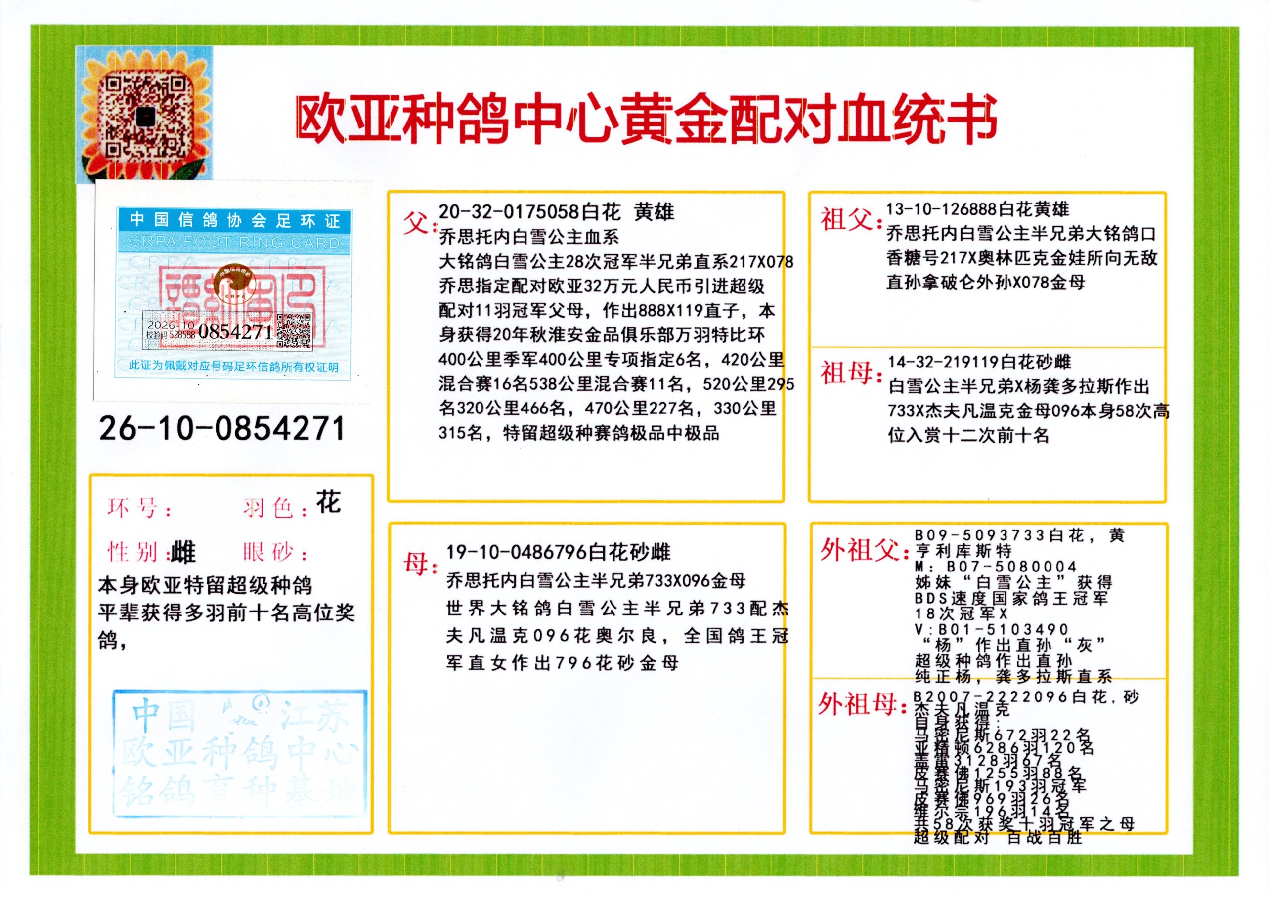 24年秋南京特比环欧亚荣获大团体冠军.小团体冠军551公里大特比13名.14名.16名.19名.20名.21名.24名.26名.27名.28名.42名.52名.54名.57名.65名.66名.68名.70名.71名.72名.74名.76名.80名.82名.83名.84名.85名.86名.90名.92名.110名.116名.121名.122名.128名.131名.158名.161名.164名.165名.166名.172名.174名.177名.182名.195名.196名.201名.205名.208名.210名.216名.253名.269名.275名.276名.294名.296名.299名,,24年秋云南天南铜都公棚决赛415名.天南铜都小棚决赛409名.云南玉活公棚决赛102名.490名.团体32名上笼二羽进二羽,天南铜都大棚506公里决赛445名。热烈祝贺河北省巨鹿县李兰生老师用欧亚泰山号血系连续十一年夺冠军,河北省国家赛冠军.全国季军等多次前十名高位,扬州王军王总用欧亚利奥24年春季获山东翔宇公棚决赛33名盖比53名。南京刘正龙刘总用欧亚盖比获得24年秋山东潍坊国际公棚决赛42名.精英赛30名.三关鸽王71名.决赛86名.加站赛16名.南京市特比环A组鸽王9名.B组鸽王5名.6名.C组鸽王5名.精英赛冠军4名.技能赛A组冠军4名.5名.秦淮区特比环荣获15名.46名.48名.87名。四川西昌徐亮徐总用欧亚利奥获得凉山州聚友决赛177名.第二关亚军双关鸽王19名.三关鸽王105名.云南豪庭公棚决赛603名。热烈祝贺24年四川重庆翔园鸽舍用欧亚泰山号荣获春季400公里冠军.秋季500公里冠军,河北王总用詹森X利奥获得千羽千翔公棚400公里冠军,广东蔡楷焕荣获24年秋爱好者 赛鸽俱乐部三关鸽王季军.一关420公里99名.二关450公里11名.三关520公里32名.单关季军.7名.12名,江西李卫兴荣获贵州红枫公棚8名.共翔俱乐部寄养棚四关综合鸽王30名.一关400公里78名.二关500公里55名.三关520公里37名.四关500公里57名.同父母获公棚18名.雷鸣获得武汉黄浦育翔中心冠军,四川陈文获得四川明鸿俱乐部300公里梦幻2名.3名.4名.9名.10名.13名.14名.15名.31名.34名.40名.41名.42名.43名.69名.71名.72名.73名.74名.94名.95名.97名.98名.99名.419公里决赛荣获总冠军7名.总共归巢9羽,四川徐亮获豪庭决赛603名,山西郑勇获得山西泰鑫公棚决赛255名詹森红狐,热烈祝贺马总获得开尔(飞跃队)决赛9名获奖金1310000万元.第一关52名,天津津福资赛180公里96名.获奖金429543万元,欧亚支持全国鸽友24年秋多人报喜 祝大家取得更好成绩,给欧亚报喜鸽友欧亚决定给每人赠送一羽超级种鸽。欧亚俱乐部特比环多关鸽王成绩:15年秋淮安特比环黑色星期一全会上笼9700多羽,当天无鸽归巢,第二天全会归巢357羽,本舍归巢158羽.前十名八羽.前一百名归巢57羽,16年春季获五关鸽王总冠军,总亚军四名.六名.七名.九名.十名.晶艺俱乐部520公里冠亚季军5名.6名.7名.9名.11名等,火车头冠军.季军6名.8名.9名.10名,16年秋晶艺俱乐部特比环520公里亚军.季军4名.6名.7名.9名,15年春南京白下特比环冠军.亚军.季军6名.7名.8名.9名.10名.指定鸽A B组获得冠军.亚军.季军4名.5名.,17年淮安特比环亚军.4名.5名.7名.8名.10名.六关鸽王总冠军.4名.6名.9名.10名,寄养棚宿迁刘总20羽特比环获冠军.季军.4名.7名.8名.9名等。18年荣获万羽特比环六关鸽王总冠军.总亚军.总季军.6名.8名.十名.单关四羽冠军.二羽亚军.四羽季军.前十名27羽。19年秋万羽特比环六关鸽王总亚军.总季军.5名.8名等,单关二羽冠军.三羽亚军.一羽季军前十名31羽。20年秋淮安市鸽会四关特比环大赛风雨无阻鸽王亚军.鸽王六名,金品俱乐部万羽特比环六关鸽王总冠军,总亚军.四名.五名.六名.七名.八名.十名.前二百名鸽王35羽,单关冠亚季军前十名四十多羽,火车头五关鸽王季军.六名.八名.前二百名鸽王十七羽。20年春荣获淮安五区一市四关鸽王总冠军.亚军.四名.八名.九名。21年秋荣获金品万羽特比环大赛六关鸽王总亚军.总季军.四名.七名.九名.十名.单关冠亚军季军前十名三十多羽。火车头协会鸽王六名.七名.十名.单关前十名十七羽。22年秋荣获鸽王总冠军.总亚军.5名.7名.8名.9名.11名.单关冠亚季军前十名三十多羽,第一关单关前二百名四十多羽,第二关前二百名三十多羽,第三关前二百名四十多羽,第四关前二百名四十多羽,第五关前一百名53羽。23年秋荣获鸽王季军.五名.八名.十名.13名.17名.20名.27名等多羽鸽王.单关前十名二十多羽。公棚.寄养棚部分成绩:16年秋宁夏黄河公棚总冠军电脑戈马力指定通炮冠军,17年送八羽参赛获得鸽王八名进奖四名,支持韩总荣获八名。支持鸽友荣获宁夏中卫公棚决赛总冠军.精英赛冠军,支持18年宁夏黄河公棚决赛冠军詹森X泰山。安徽鼎博寄养棚院内外四关鸽王总冠军.鸽王十七名.三十七名同窝,鸽王39名.42名.58名.67名。18年山东公棚预赛冠军.决赛65名.送八羽进奖五羽.指定获奔驰汽车一辆。支持鸽友获得云南蓝云公棚冠军.盖比X佛卡门。支持鸽友荣获云南银集公棚决赛冠军 詹森427X520血系 速度赛6700羽冠军。17年荣获金马俱乐部寄养棚四关鸽王总冠军.季军.六名.八名.第一关冠军.亚军.季军四名.七名.十一名.金牌教练奖。支持鸽友18年北京费翔公棚预赛九名电脑X桑杰士,支持鸽友荣获陕西威力公棚决赛11名.内蒙古临河寄养棚四关鸽王六名.詹森配泰山,支持河北王总用欧亚詹森427配胡本喜获20年秋开尔青年棚季军。云南东荣公棚16年预赛冠军.决赛77名.17年决赛12名.詹森红狐X泰山,17年平安公棚决赛4名 詹森427。欧亚获得21年金母寄养棚第一关四名.第二关5名.第三关5名.6名.7名.10名.三关鸽王总冠军,四关鸽王14名.十羽鸽王。支持河