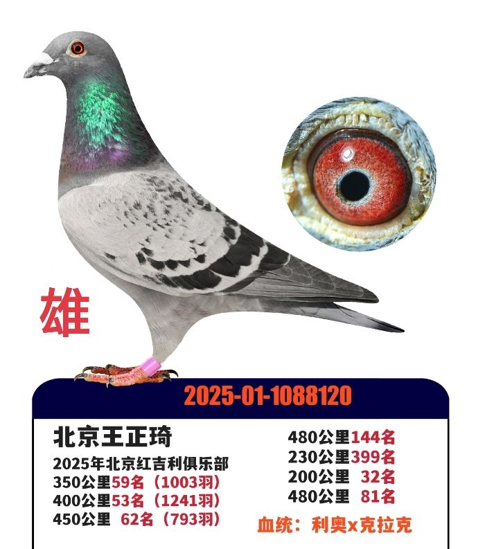血统:利奥x克拉克,父亲,壹号鸽舍张斌,翔天三名直孙,母亲,利奥原舍。本鸽长短都快,难得的好雄!