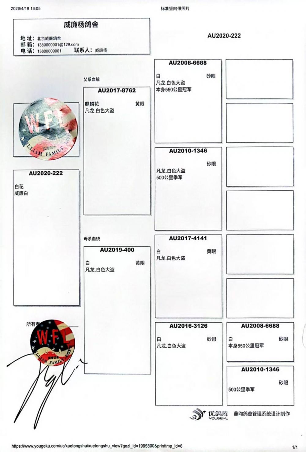 1660979 金环种鸽 威廉白公棚44名直子358 ¥1000元 0次