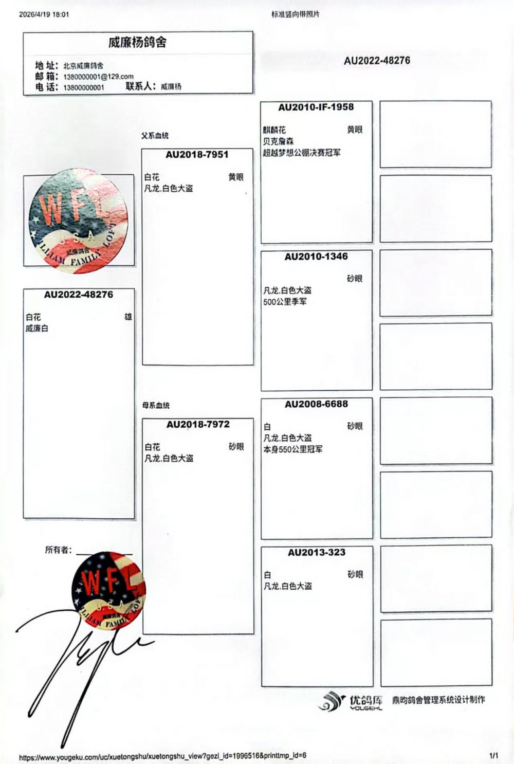 血统书随鸽发送