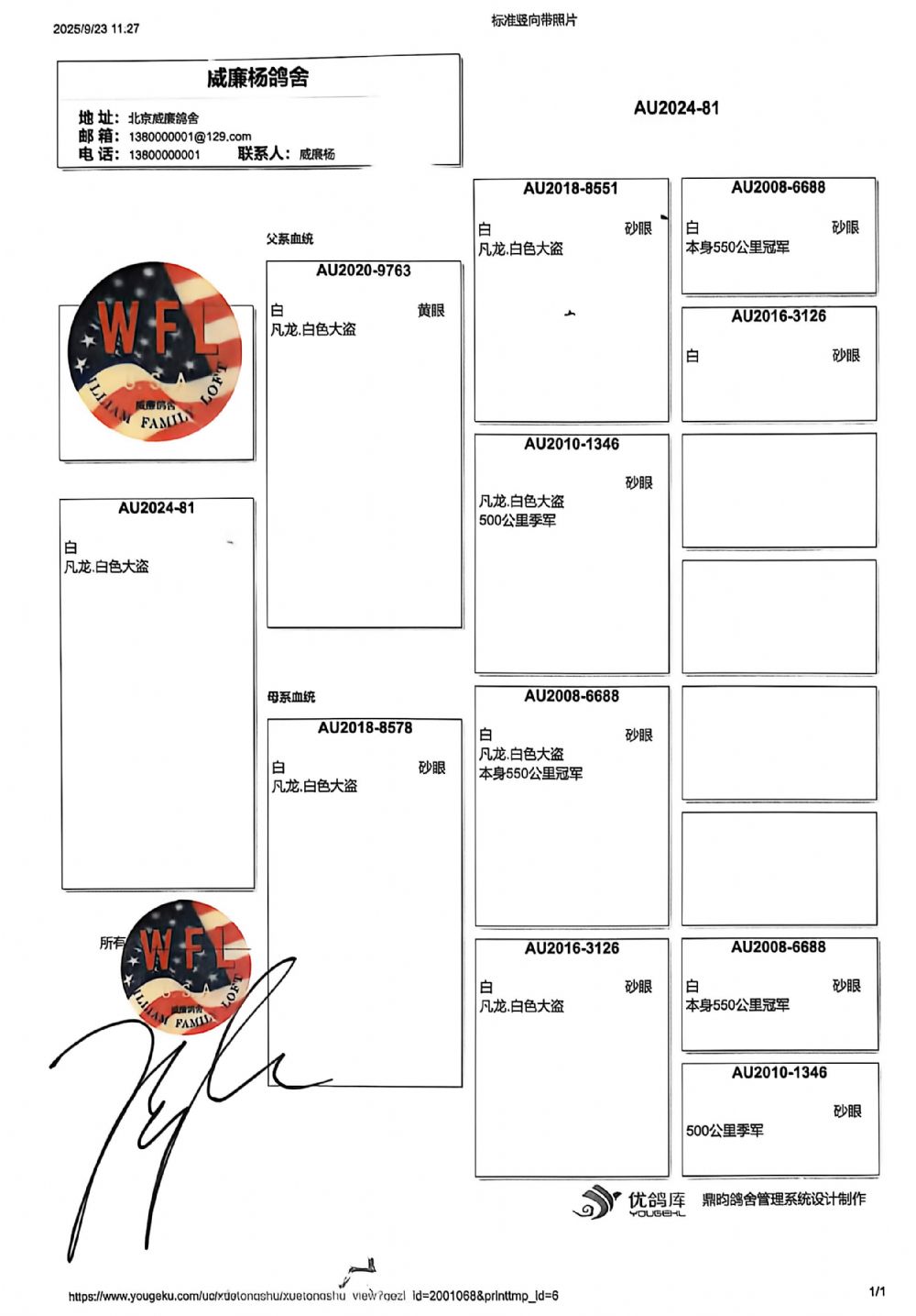 血统书随鸽发送