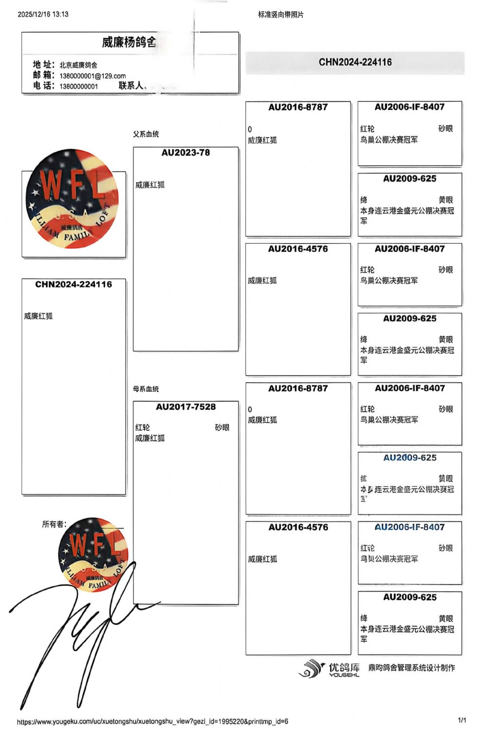 血统书随鸽发送